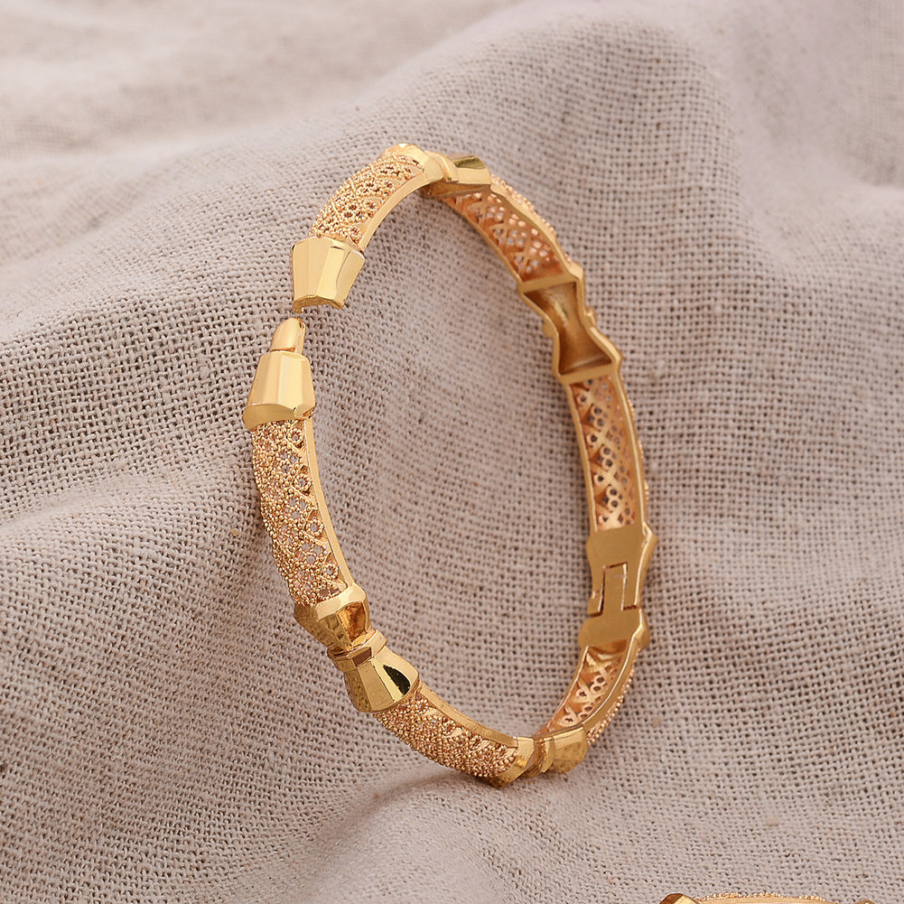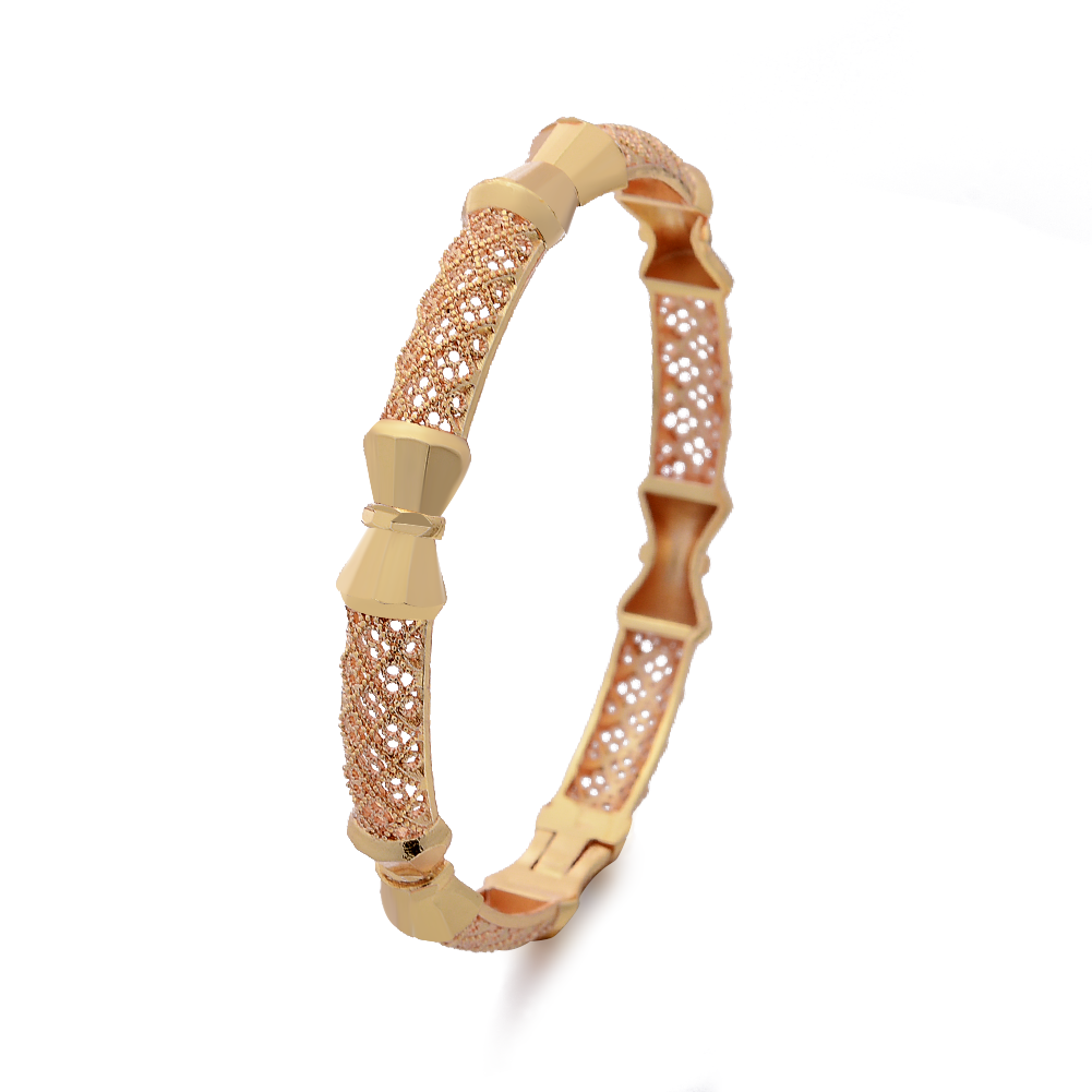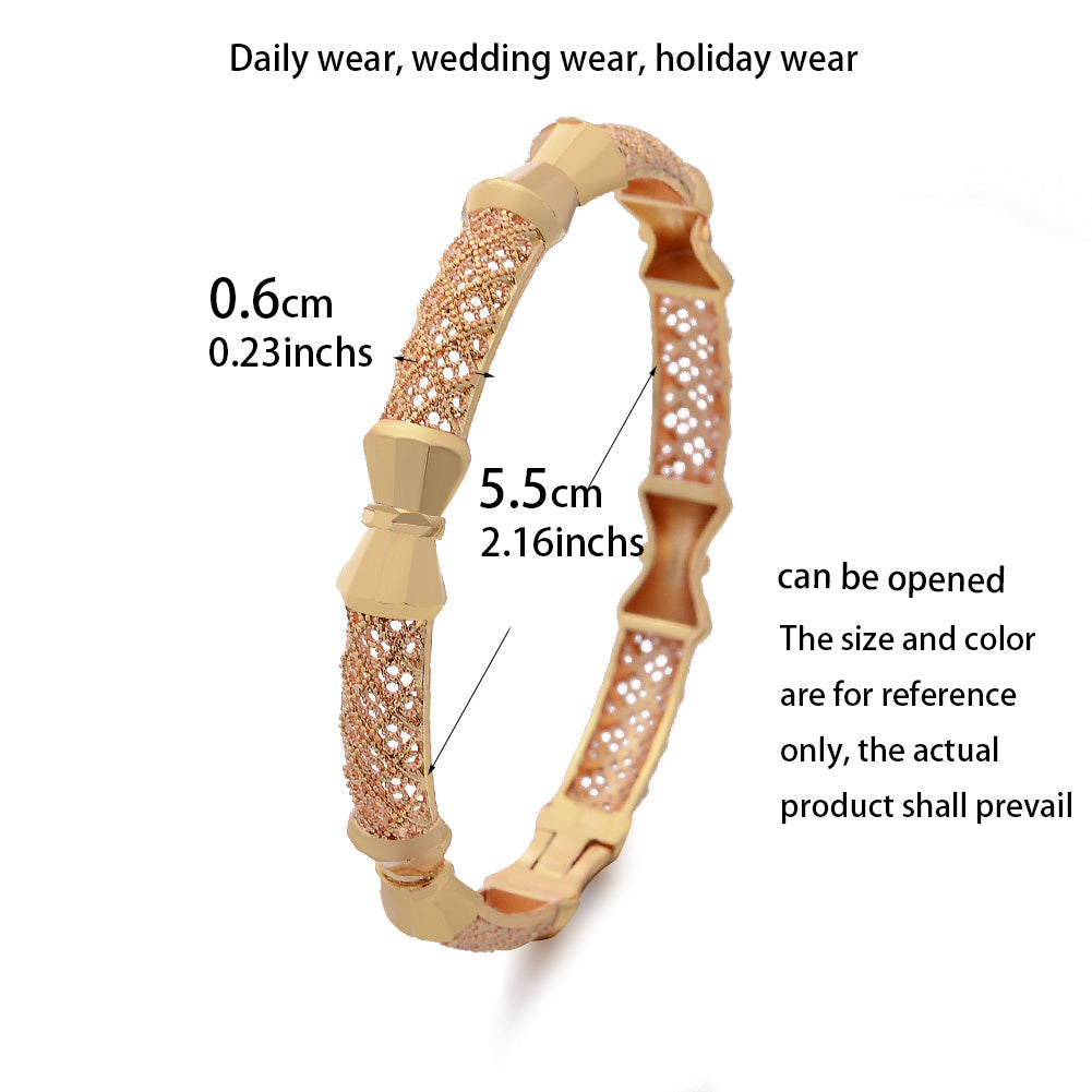Enhance your style with this stunning hollow out bangle bracelet made of 18K plated copper. Perfect for any occasion.