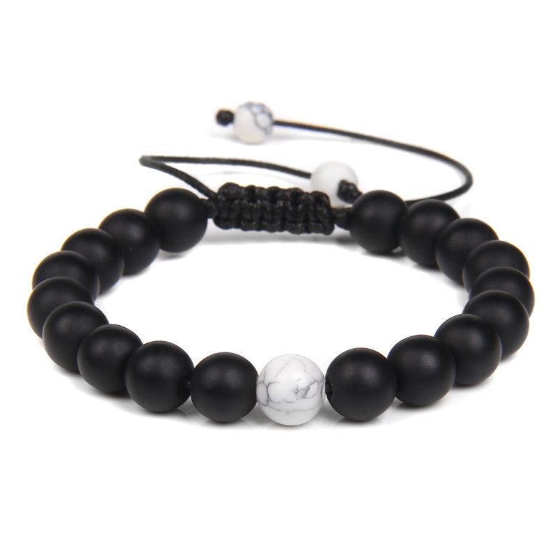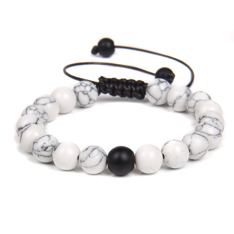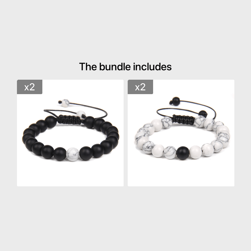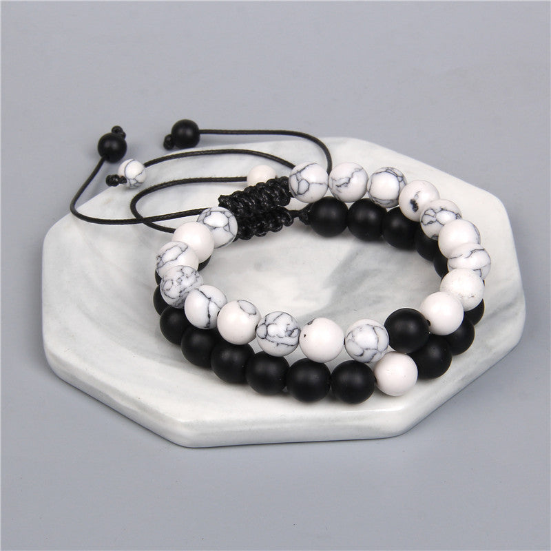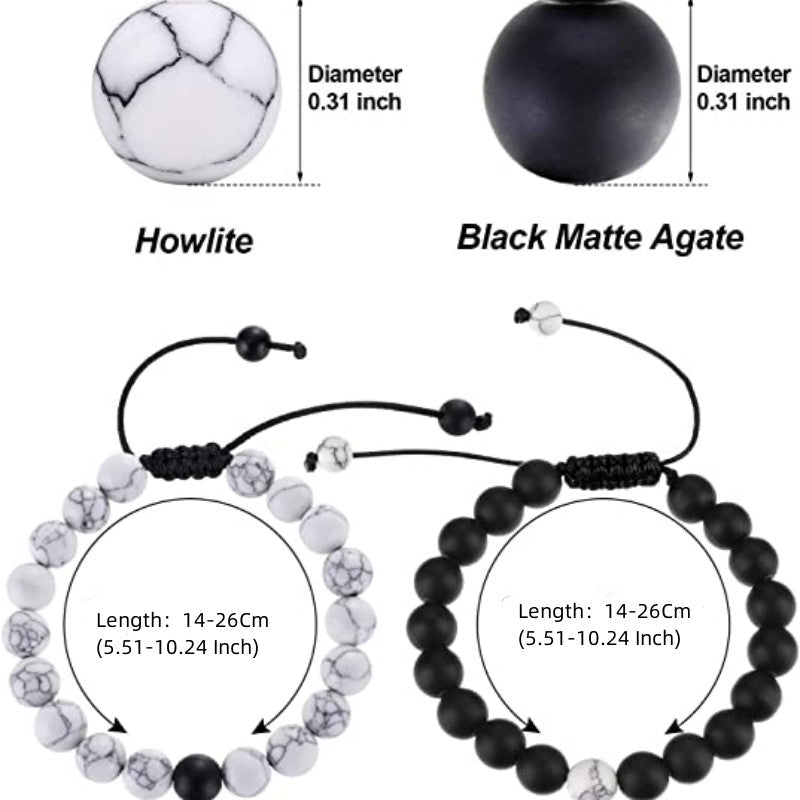 Beautiful beaded bracelet set made of howlite and matte agate, perfect as a present for couples