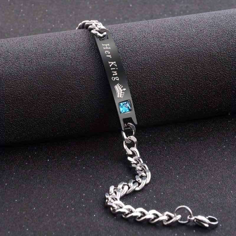 These stylish couple bracelets are made of high-quality stainless steel and feature a king and queen design.