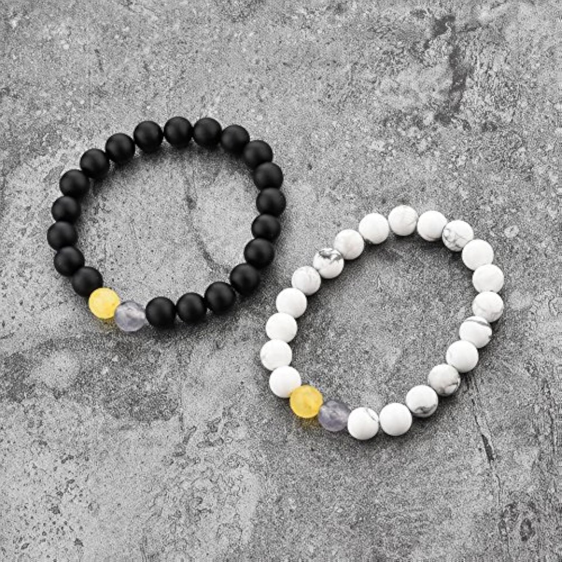 Enhance your style with these matching natural stone bead bracelets featuring triple protection layers. The magnetic closure makes them easy to wear and remove.