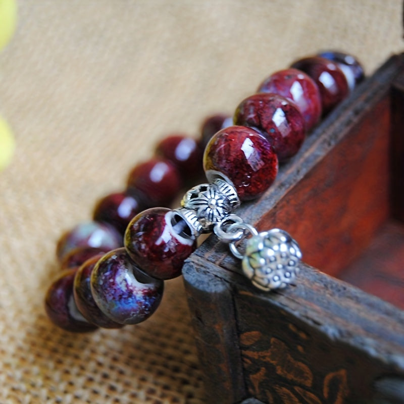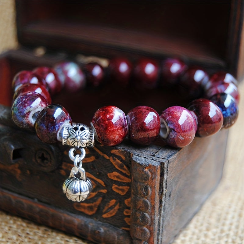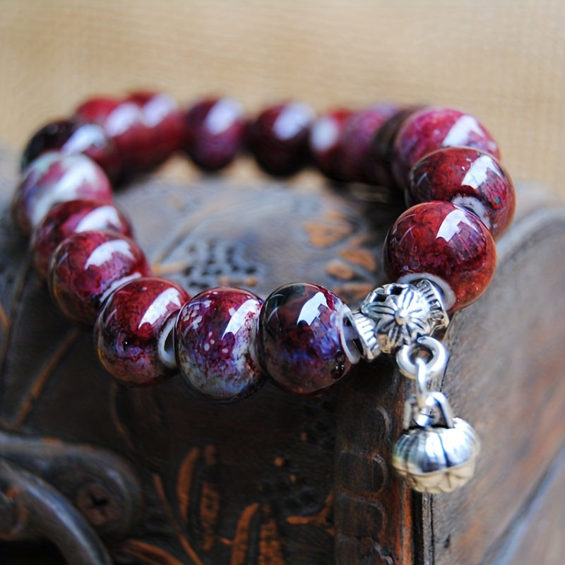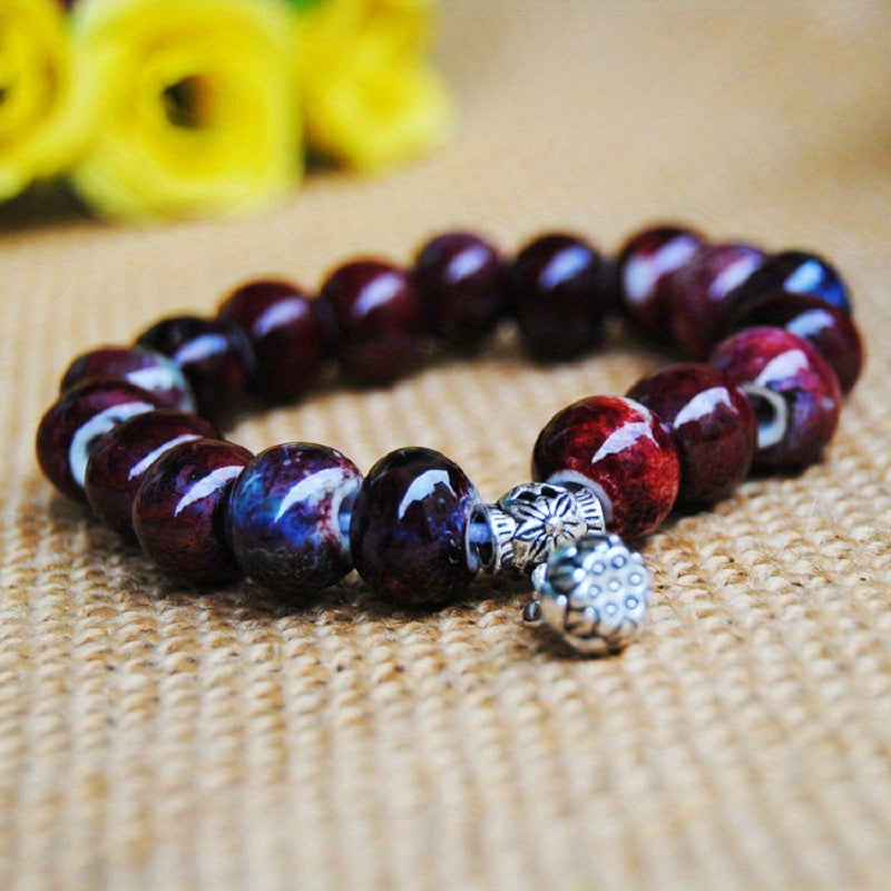 Elegant lotus ceramic beads bracelet suitable for both men and women. This hand chain bracelet is crafted with high-quality ceramic beads, adding a touch of sophistication to any outfit.
