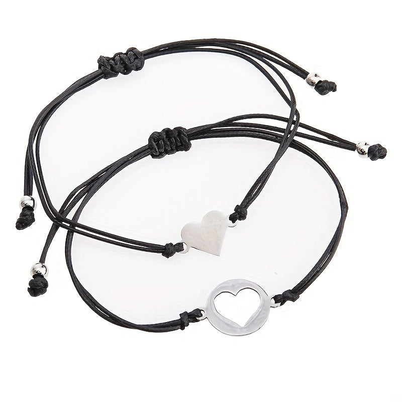 Express your love with this charming set of 2 heart string bracelets made from durable stainless steel. Perfect for couples or best friends to wear as a symbol of their bond.