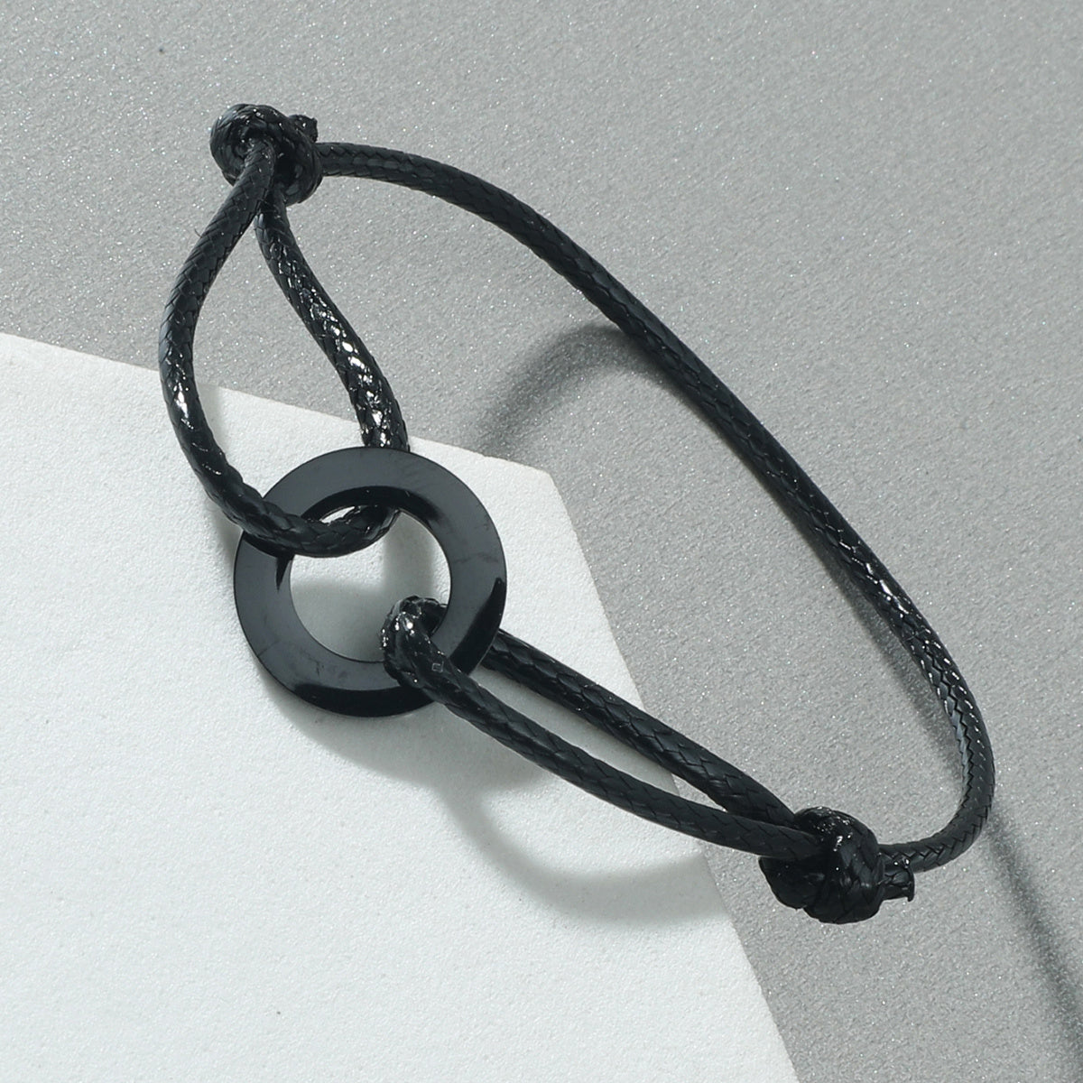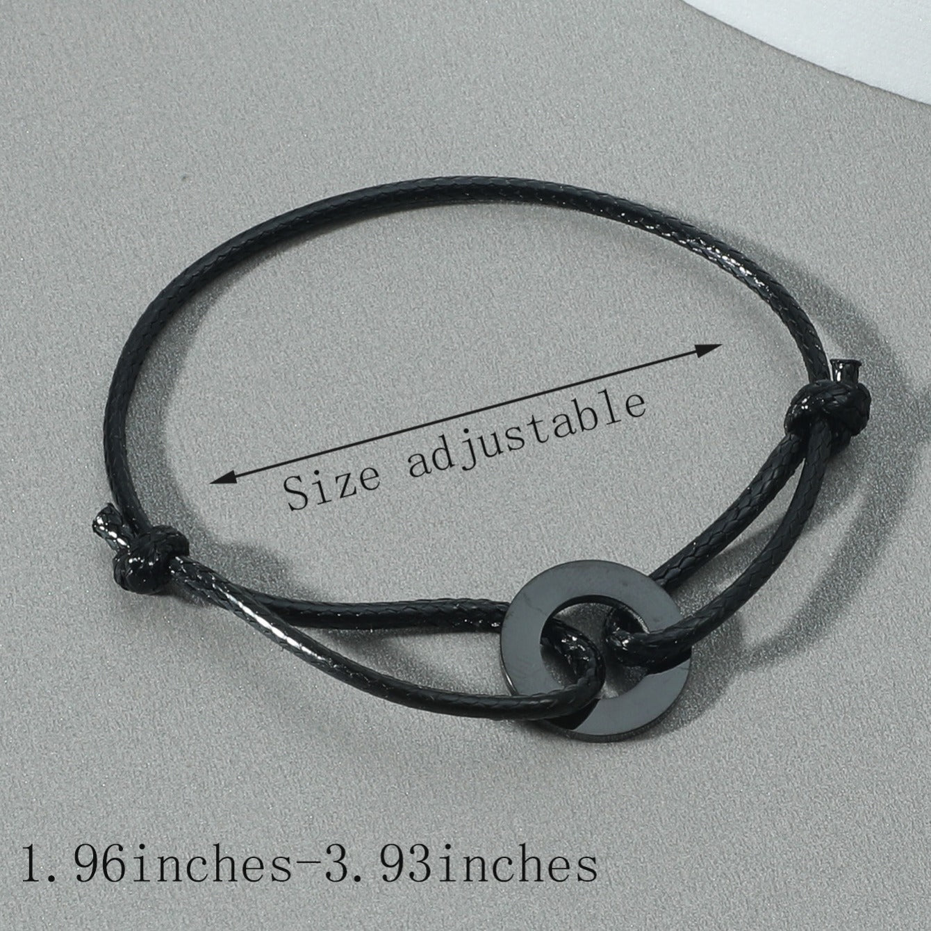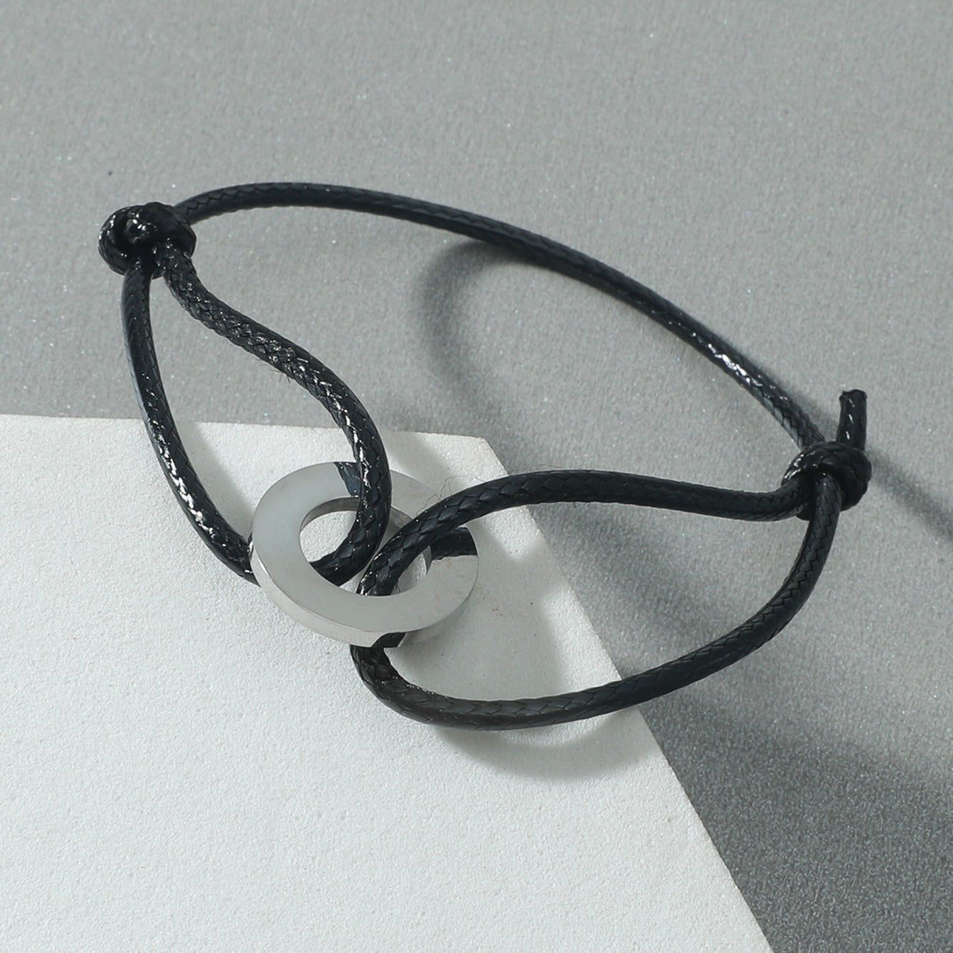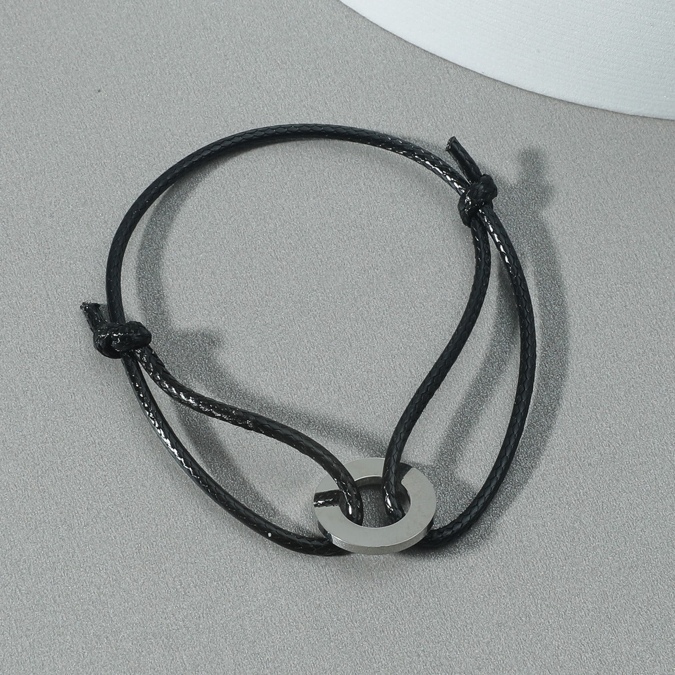 Enhance your style with this adjustable leather bracelet featuring a stainless steel ring. Perfect for casual or formal wear.