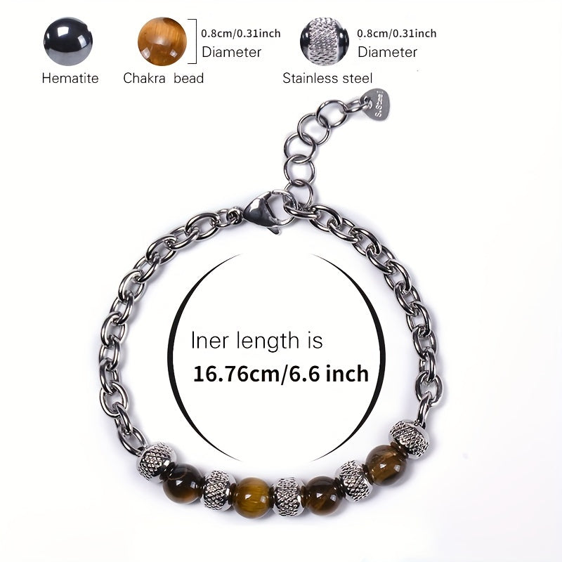 Enhance your style with this stylish men's bracelet featuring tiger's eye beads and stainless steel accents. Perfect as a birthday gift for men.