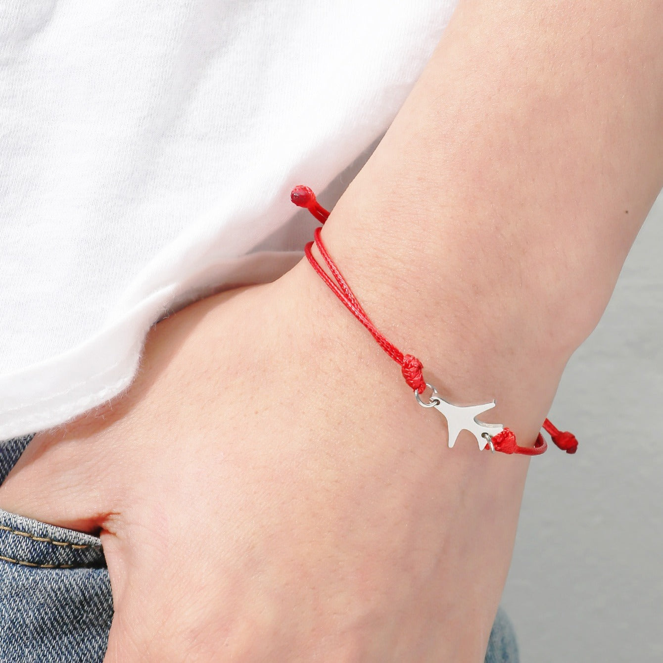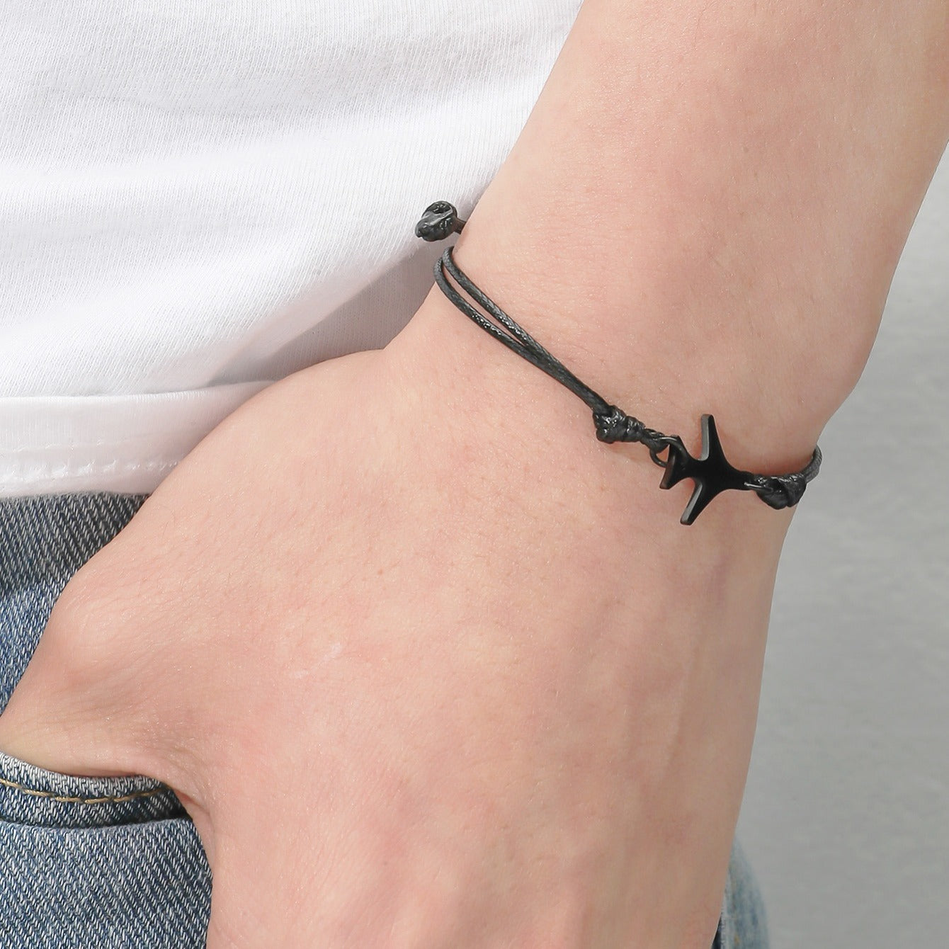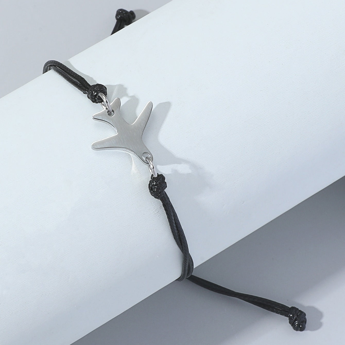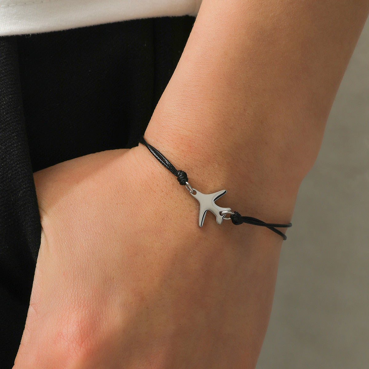 This stainless steel bracelet features a small airplane pendant and an adjustable strap for a comfortable fit.