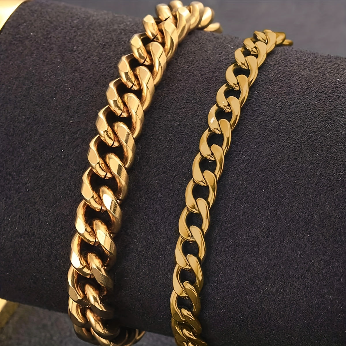 Elegant bracelet set for men crafted from stainless steel in golden and silver tones.