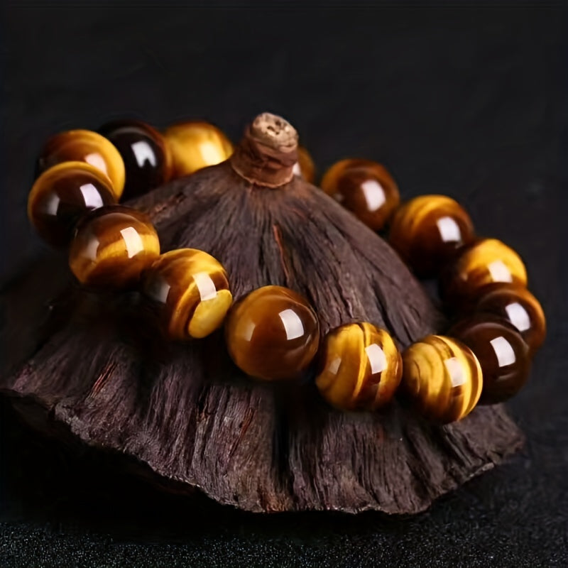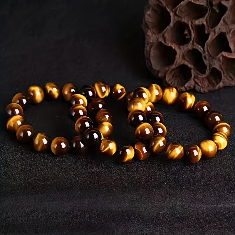 Enhance your style with this natural yellow tiger eye stone bracelet. Perfect for a bold and unique look.