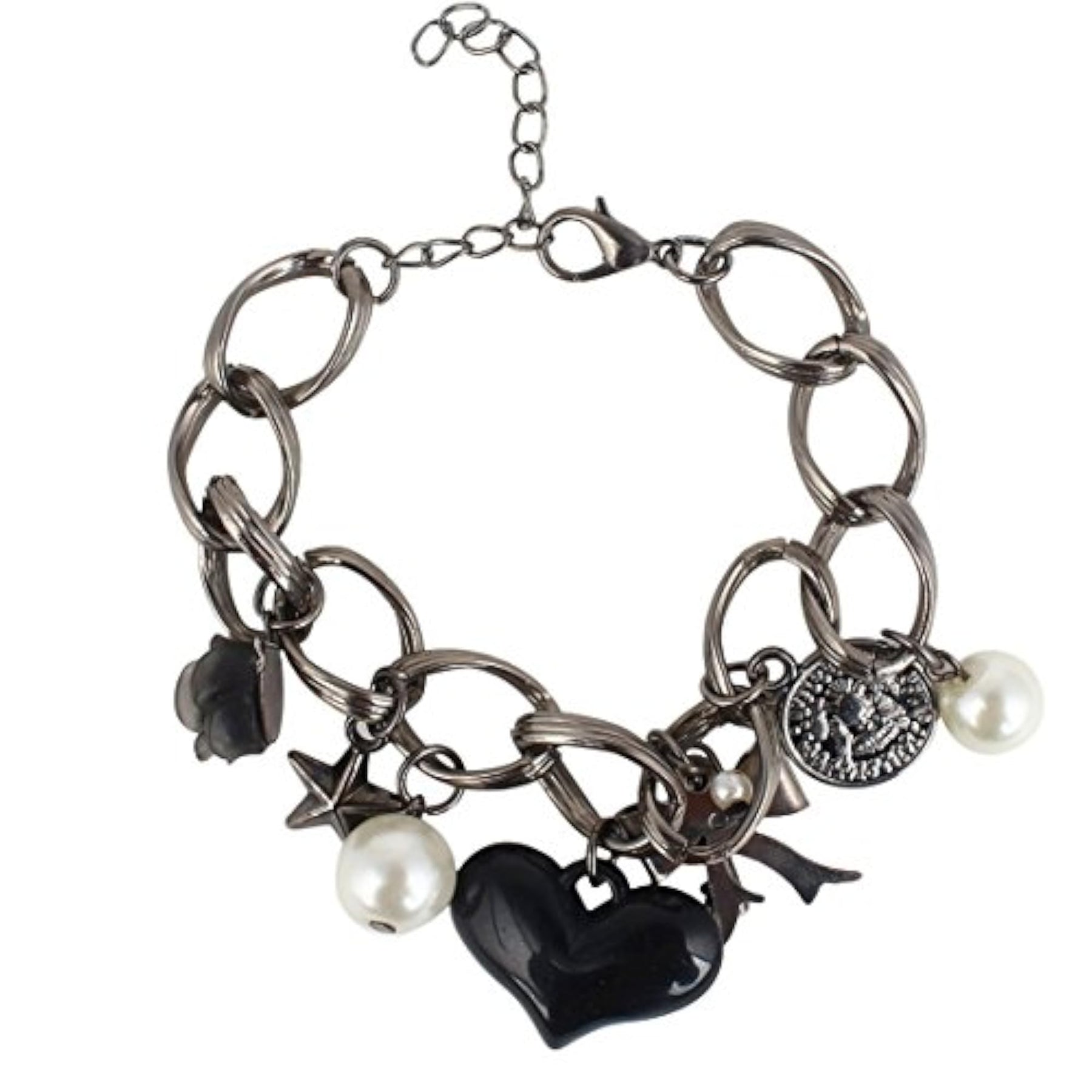 Add a touch of magic to your outfit with this charming heart charm bracelet.