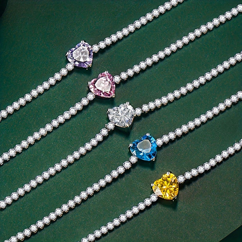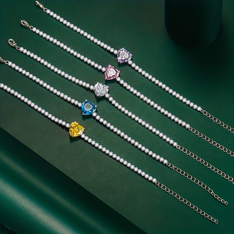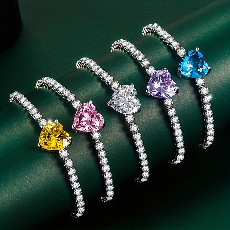 This exquisite multicolor heart shaped rhinestones tennis bracelet is the perfect accessory for engagement, wedding, banquet, or parties. It makes a nice gift for women and girls.