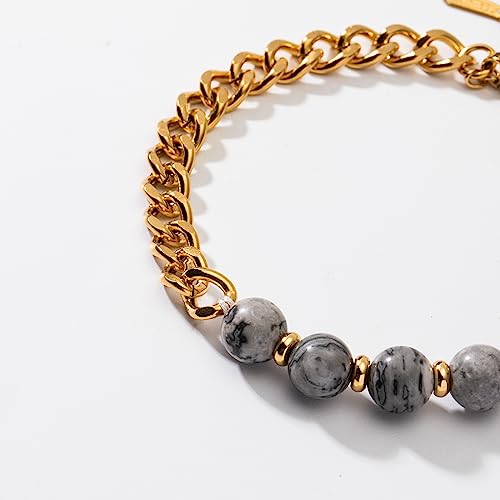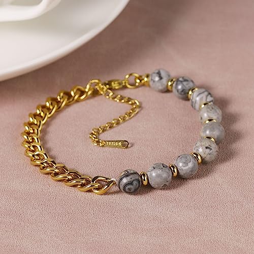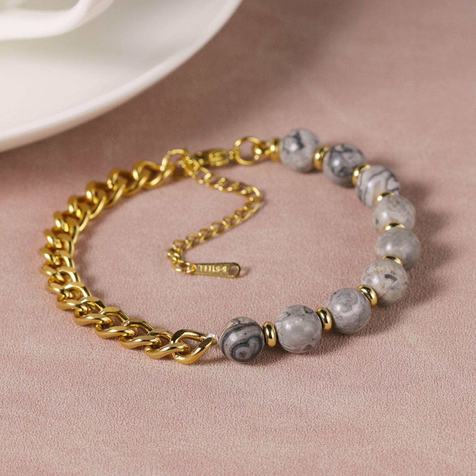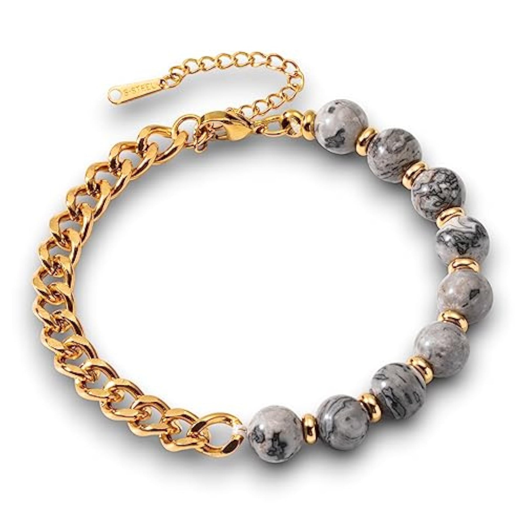 This braided expandable bracelet features natural stones with an evil eye charm for protection against negative energy.