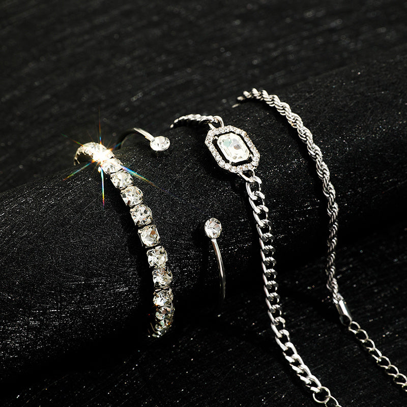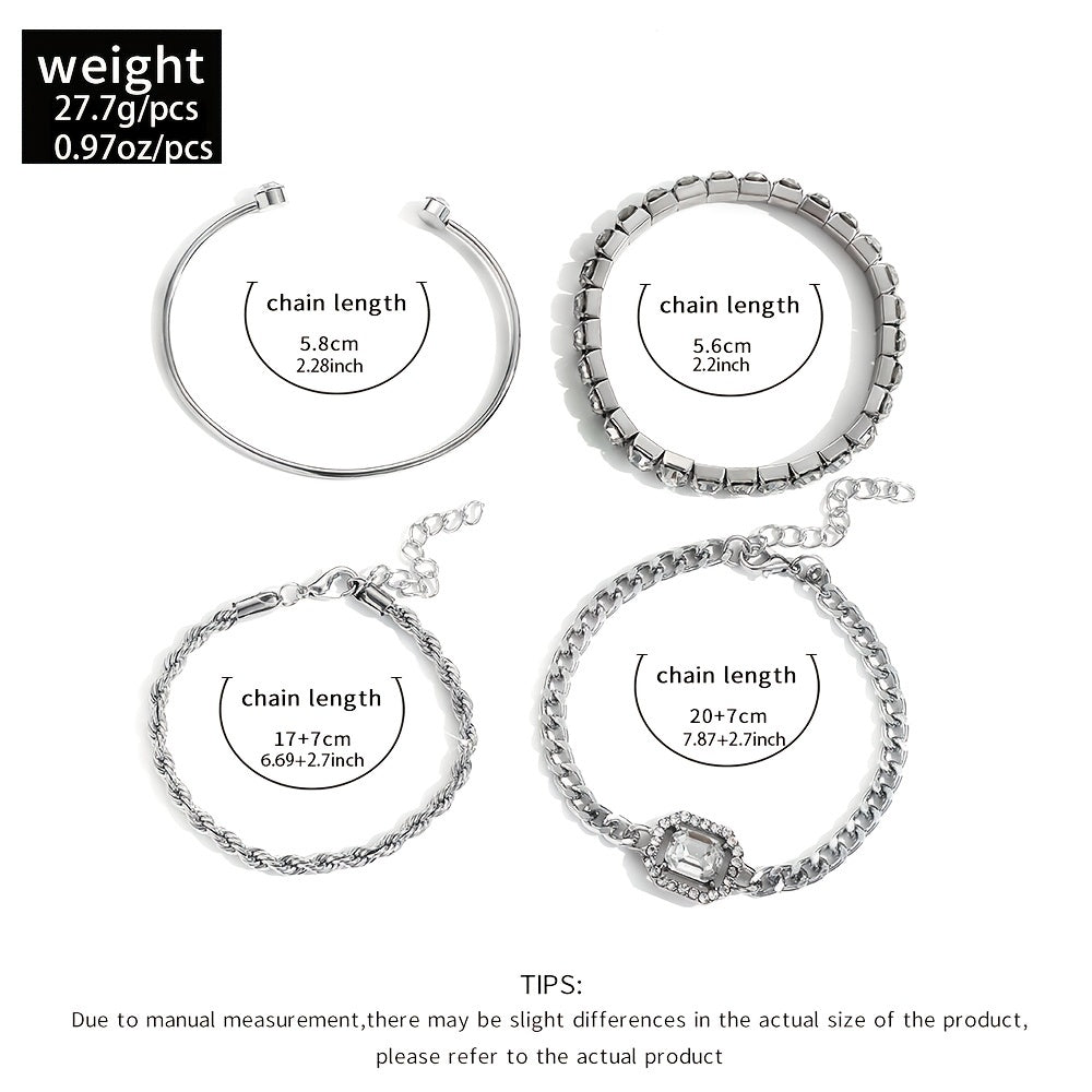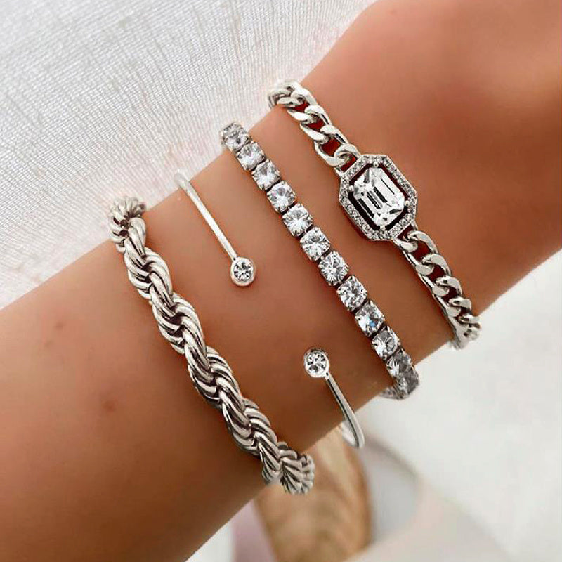 This bracelet set features a beautiful twist chain design with faux diamond gemstones, perfect for adding a touch of elegance to your outfit.