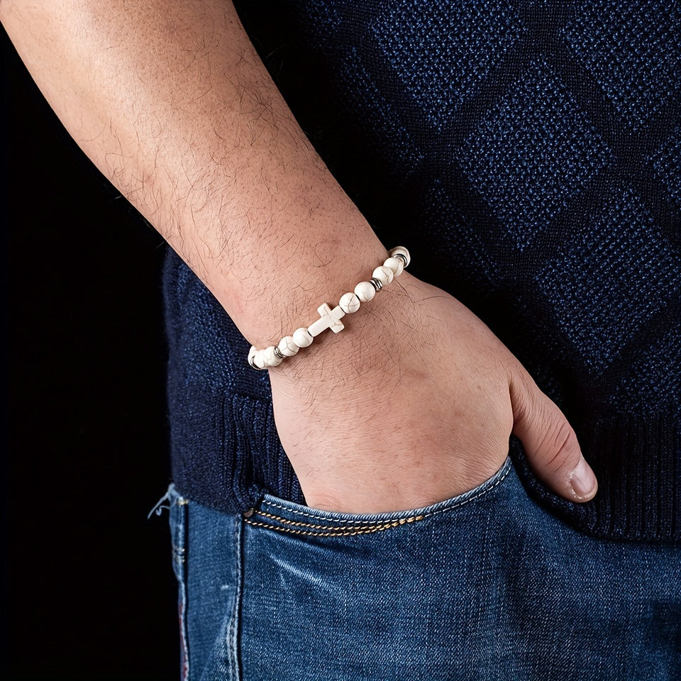 This Pine Stone Cross Bracelet is a must-have holiday essential, hand-woven to perfection. Perfect for couples or as a gift!