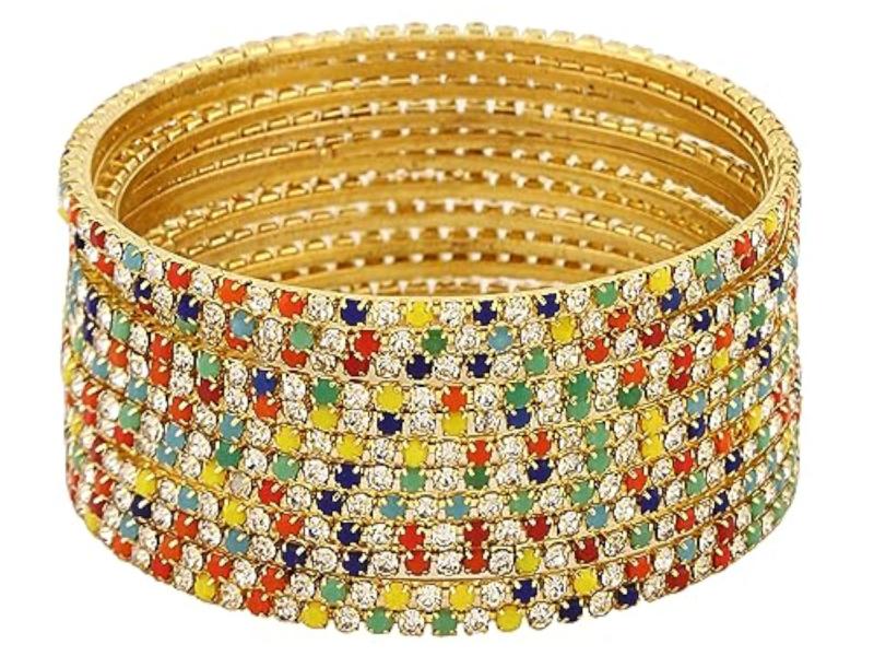 Elevate your traditional look with this set of 12 bangles. Features intricate design with white detailing.