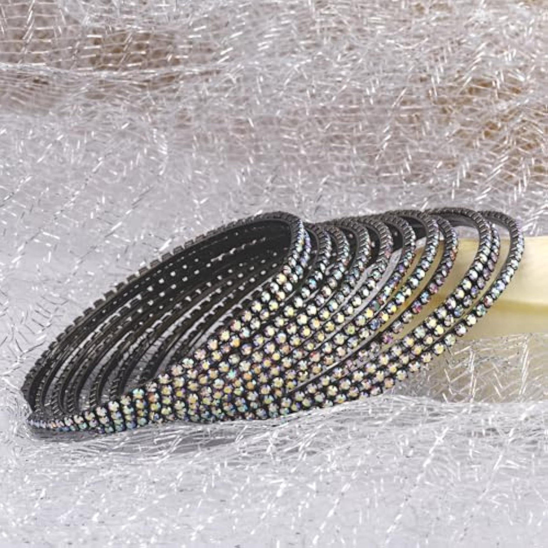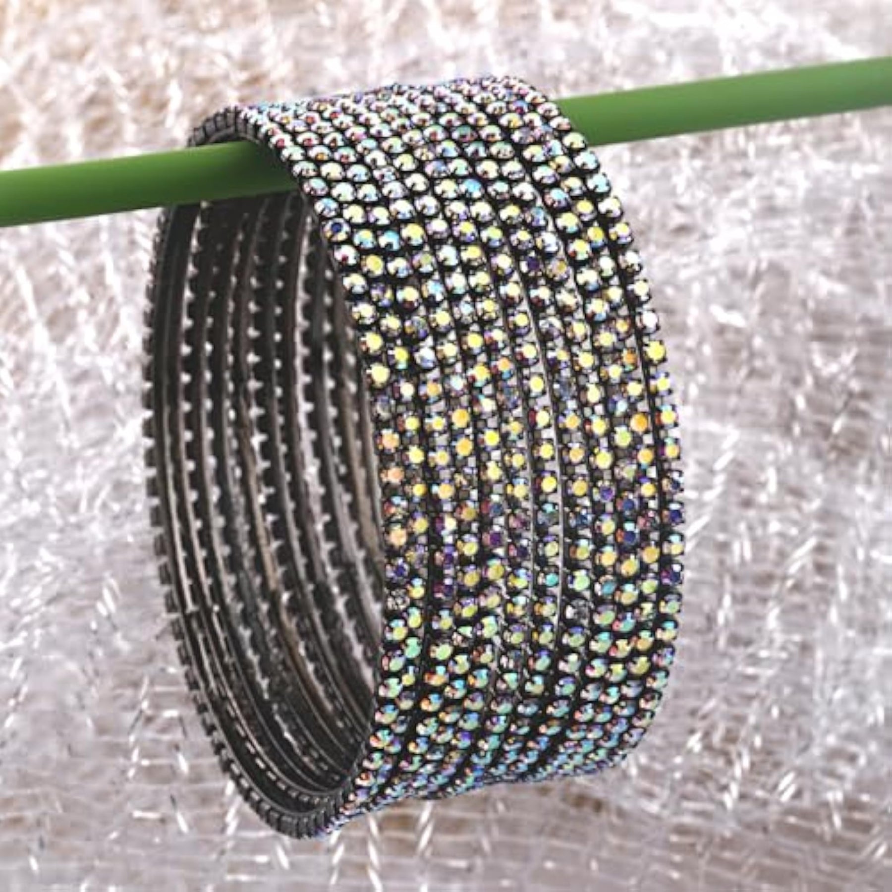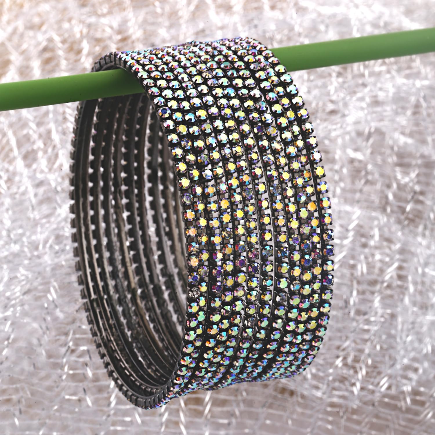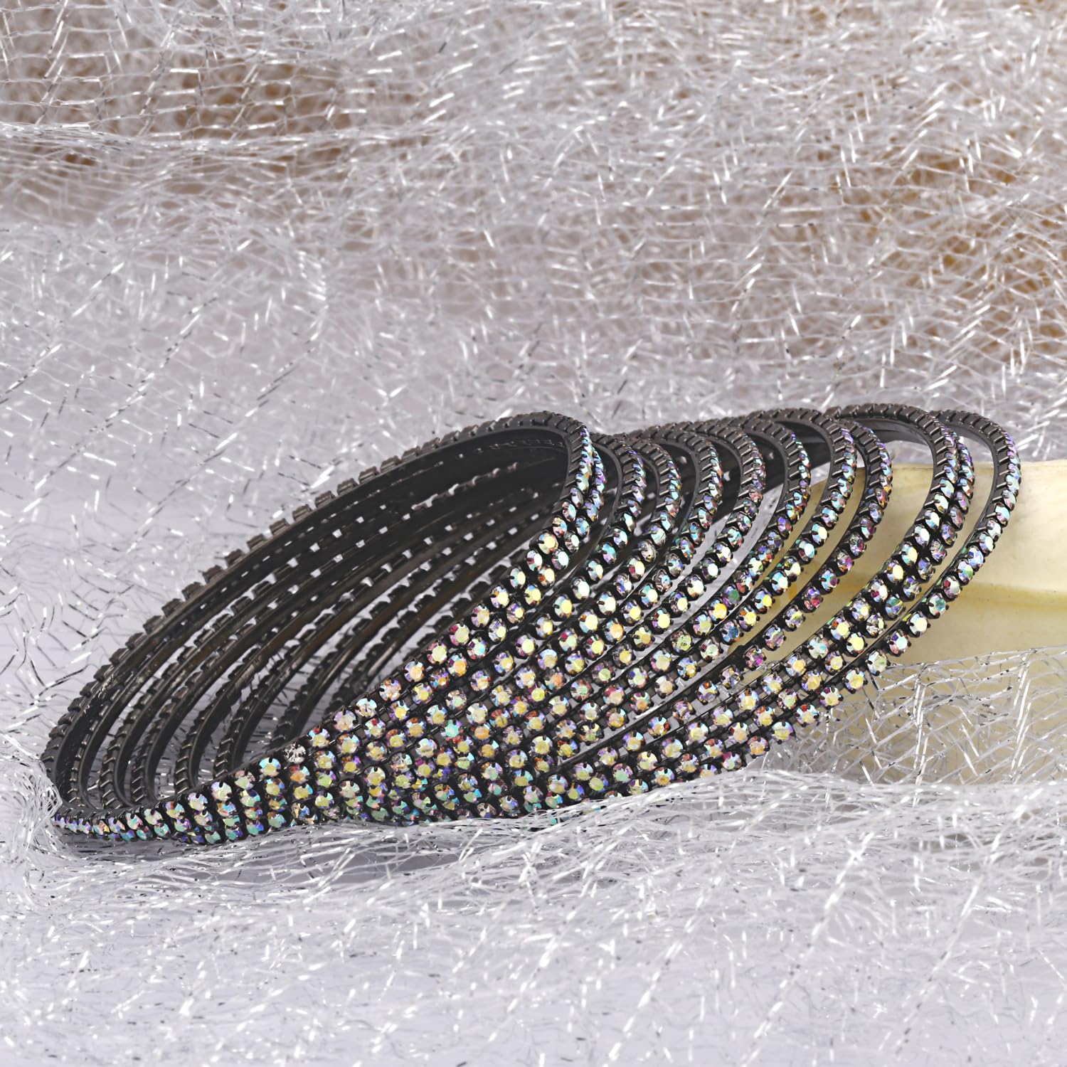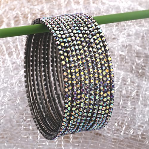 Add a touch of tradition to your ensemble with this set of 12 beautiful bangles in rainbow grey color. Perfect for any occasion.