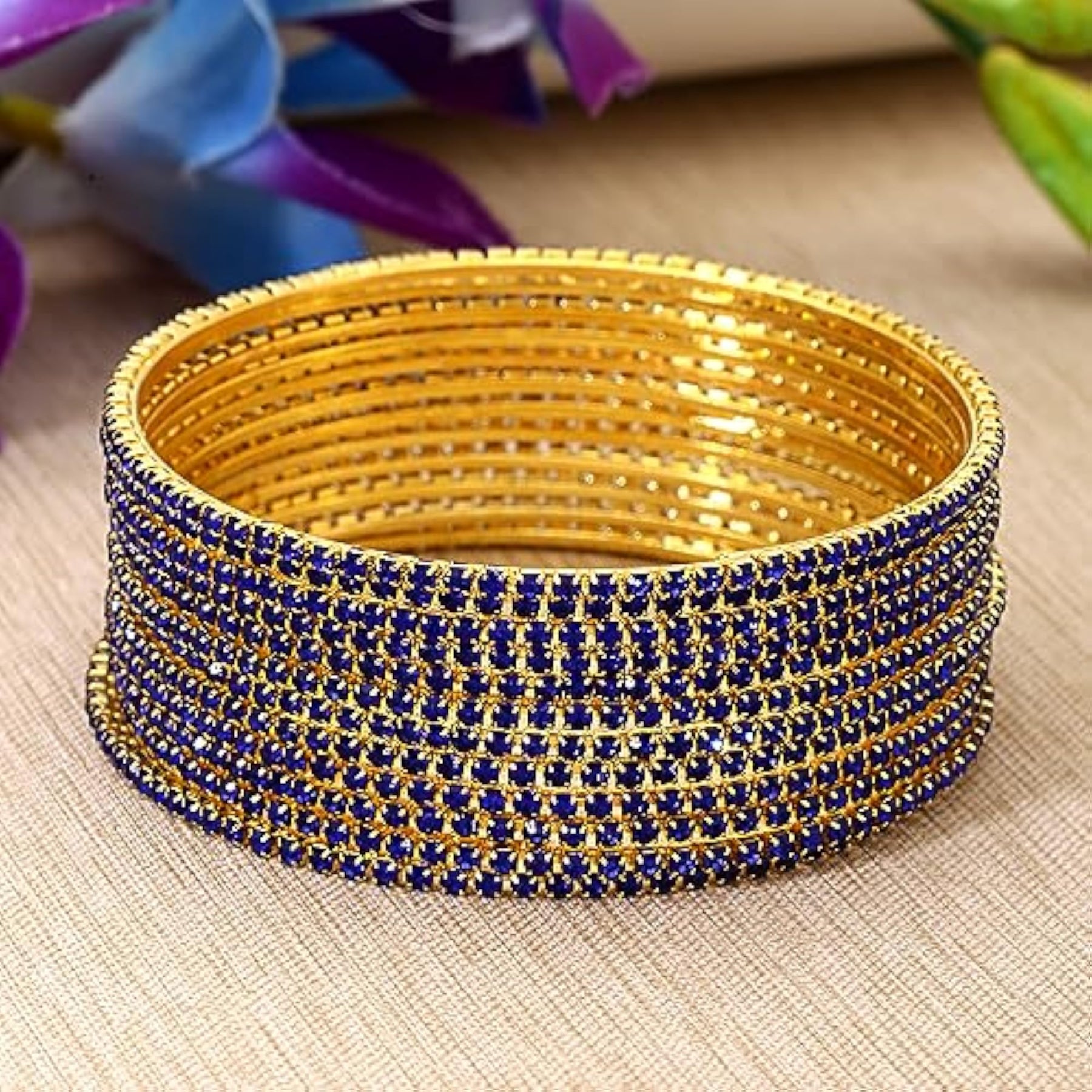 • Set of 12 traditional plated bangles in blue color