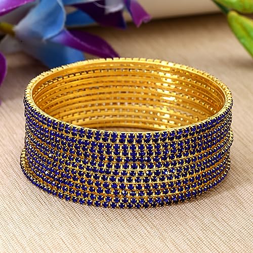 Enhance your ethnic look with this set of 12 traditional plated bangles in a beautiful blue color. Perfect for special occasions or daily wear.