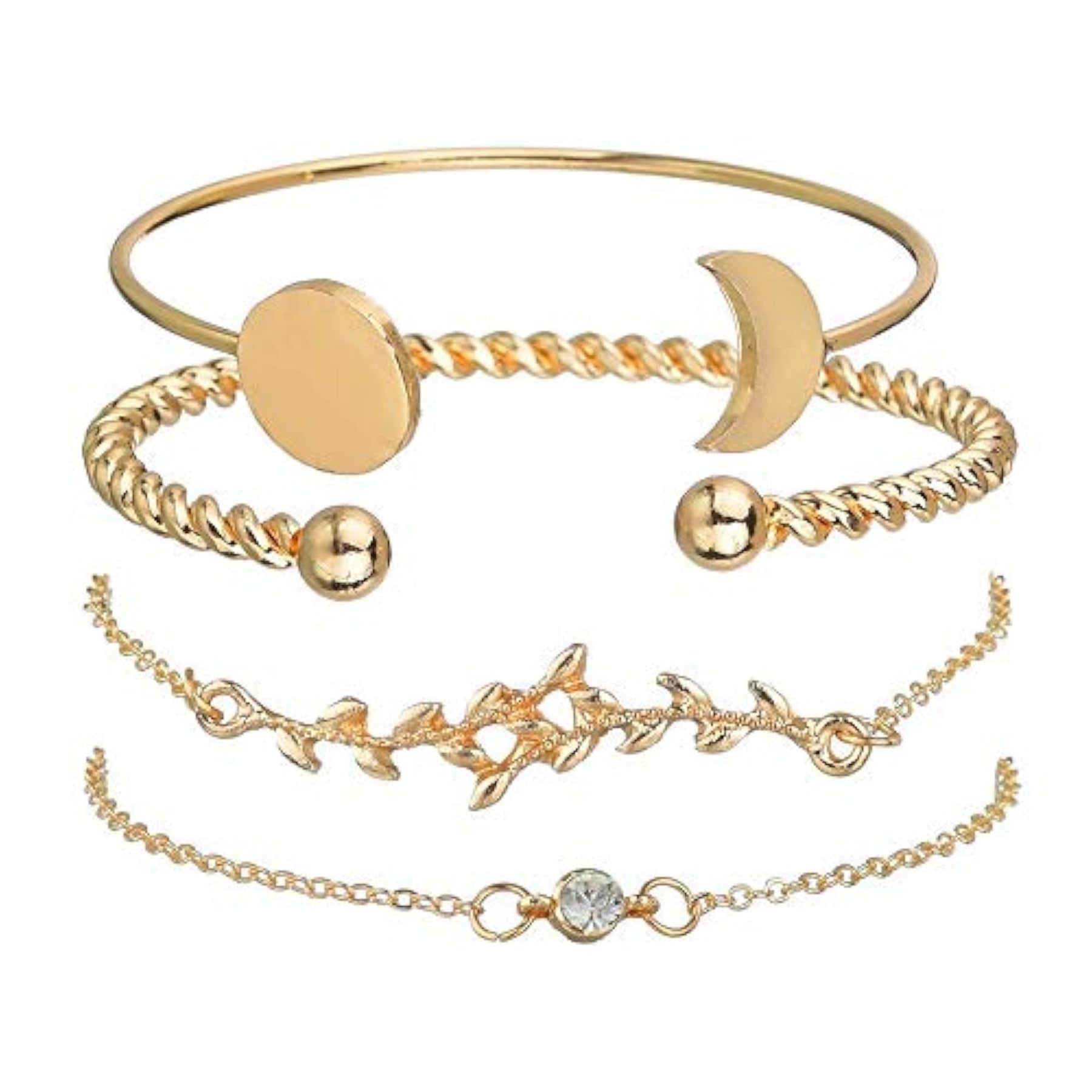 This set includes four charm bangle bracelets plated in a stylish design. A perfect gift for her on any occasion.