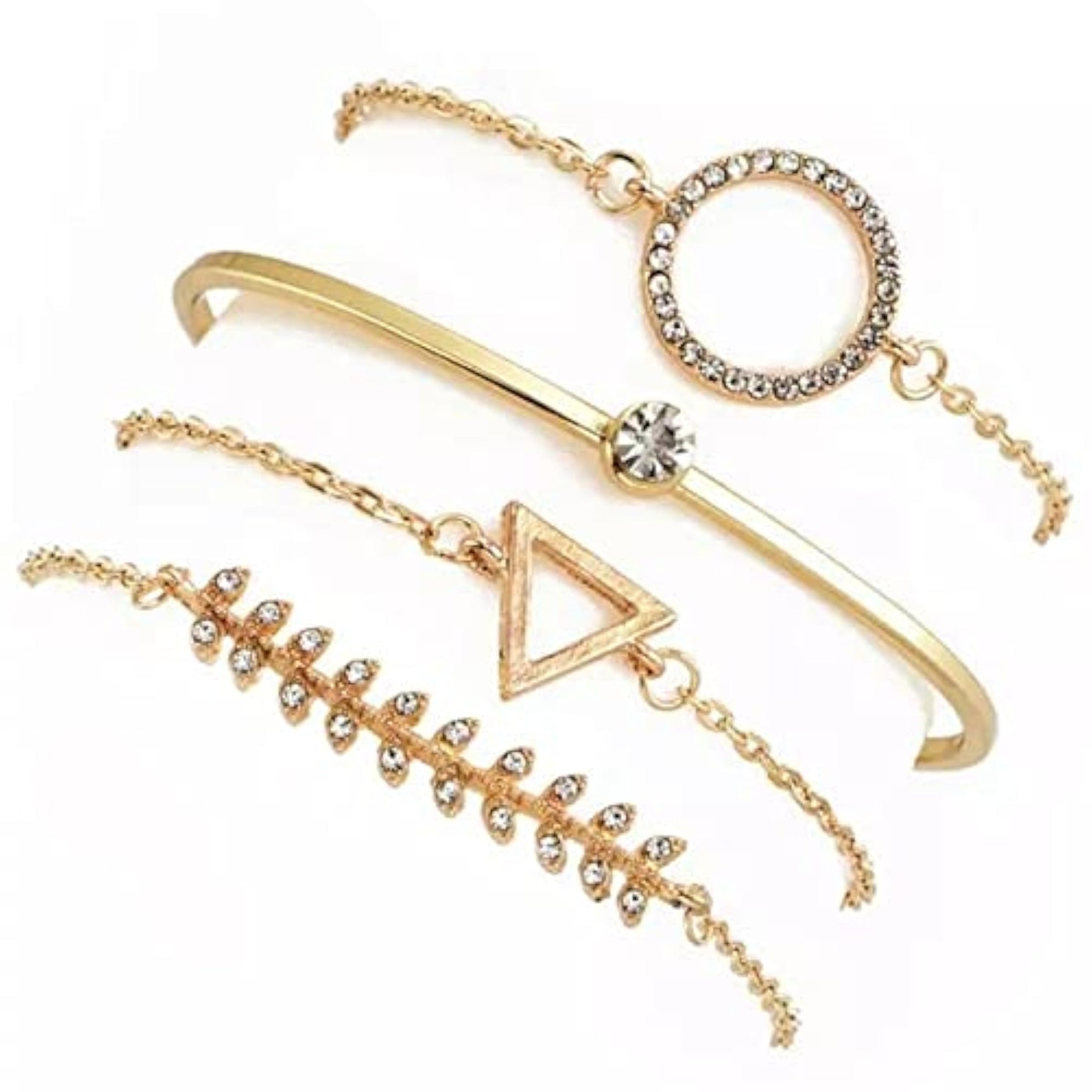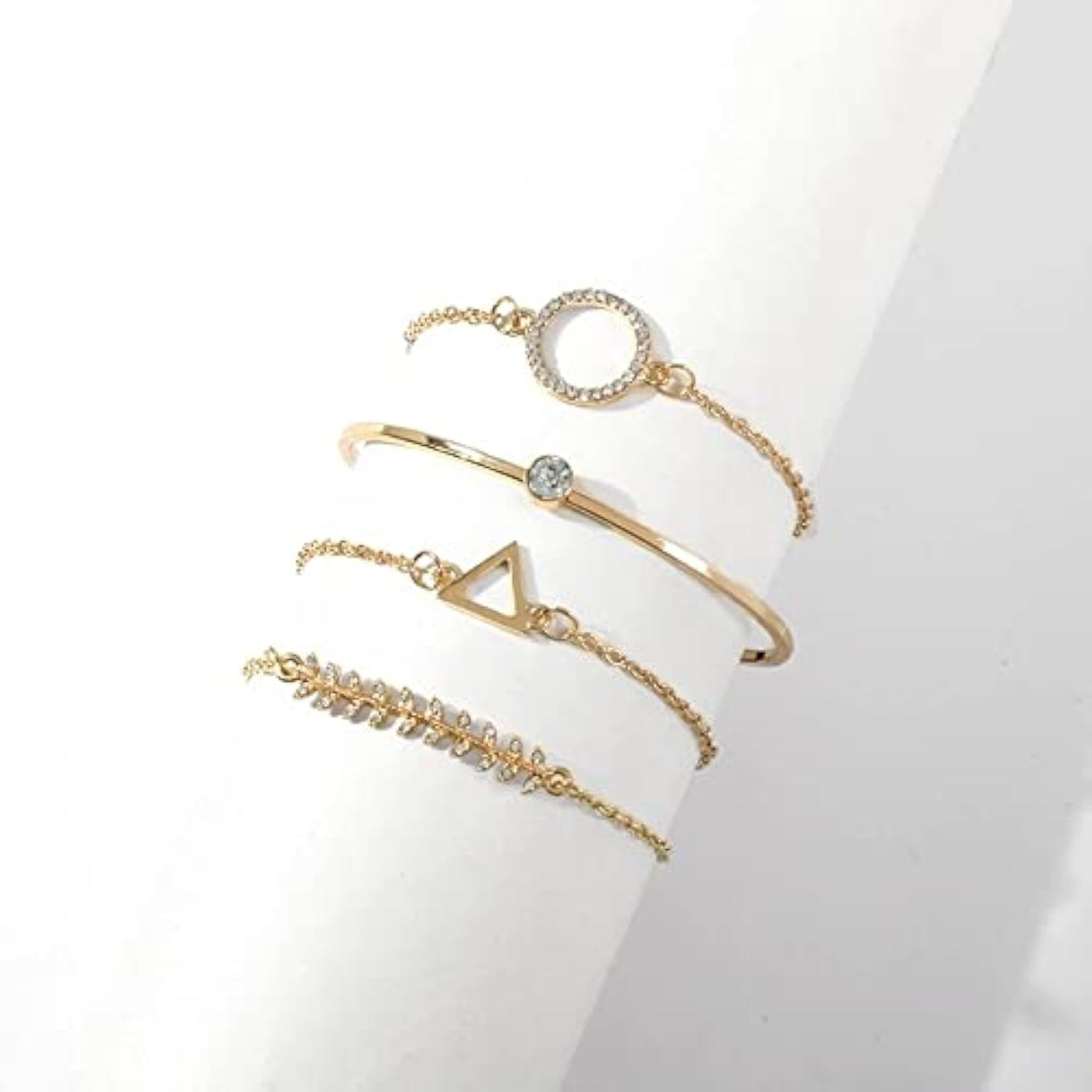 Elevate your style with this set of 4 crystal bangle charm bracelets. These bracelets feature a stylish multilayer design that adds elegance to any outfit.