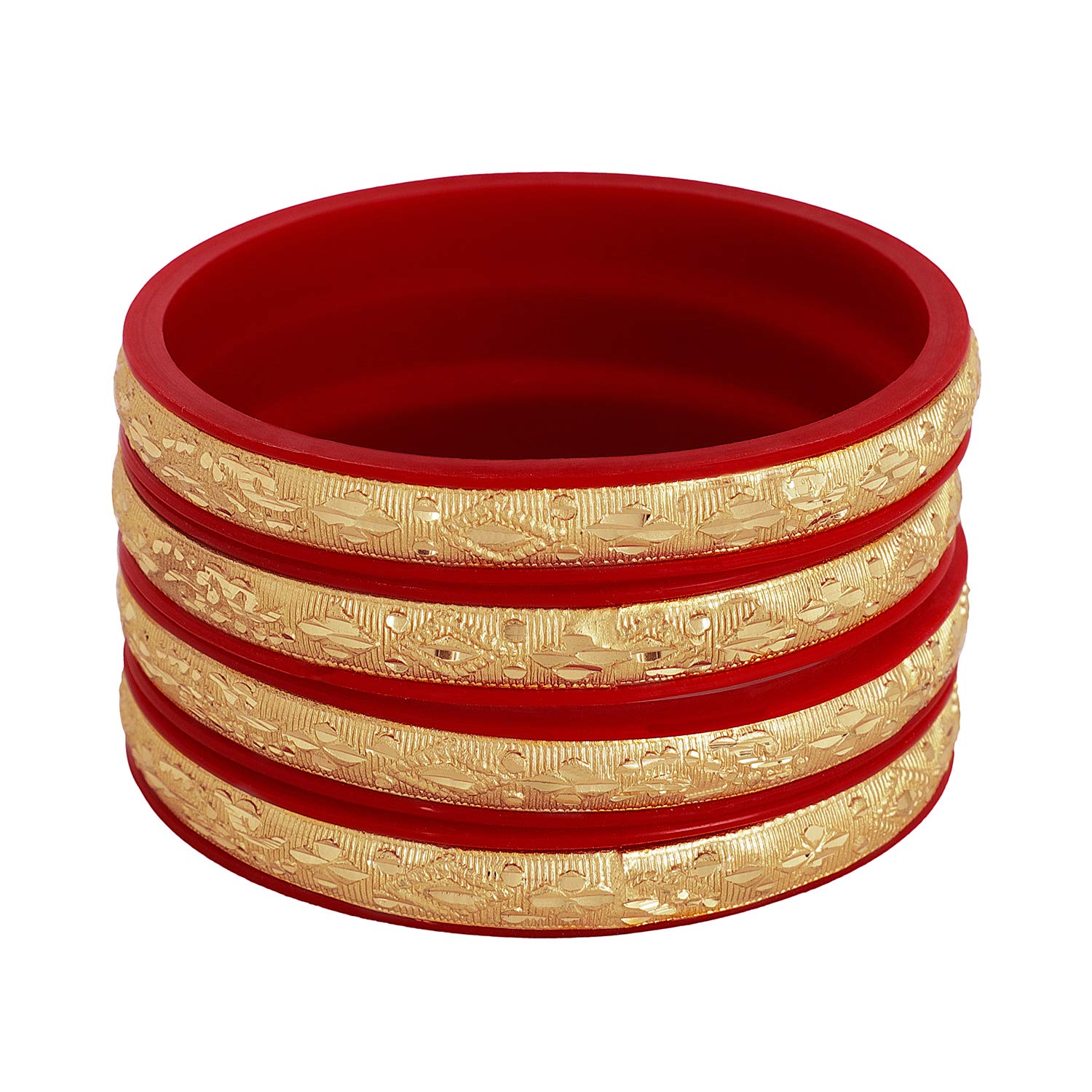 Enhance your style with this set of 4 intricately designed one gram plated bracelet bangles. Perfect for adding a touch of traditional elegance to your outfits.