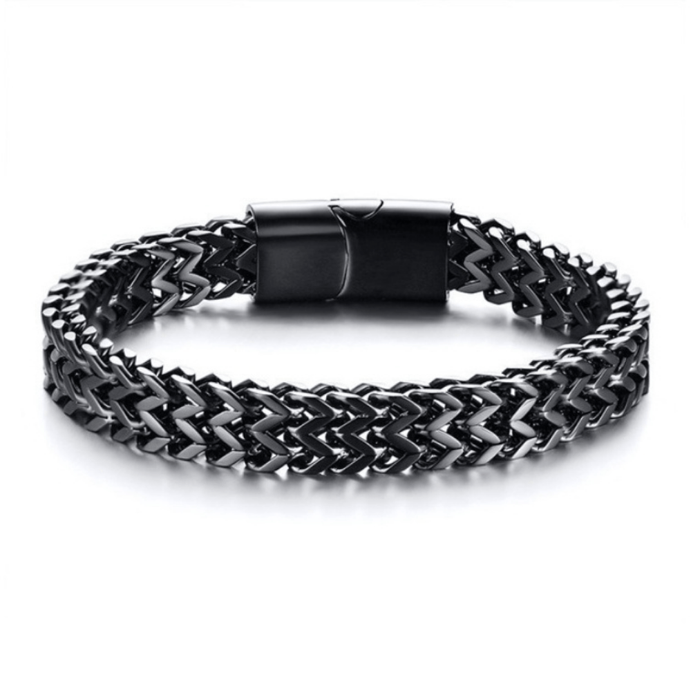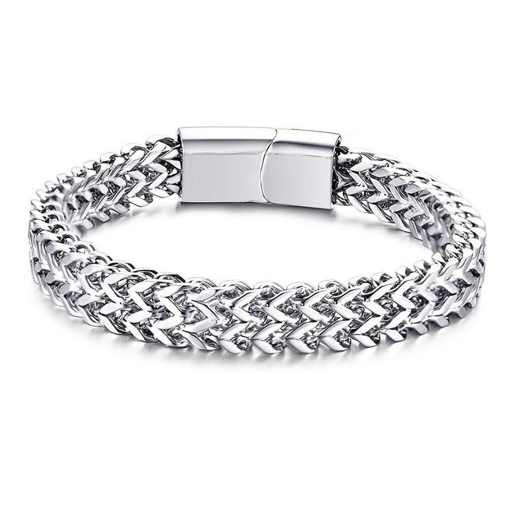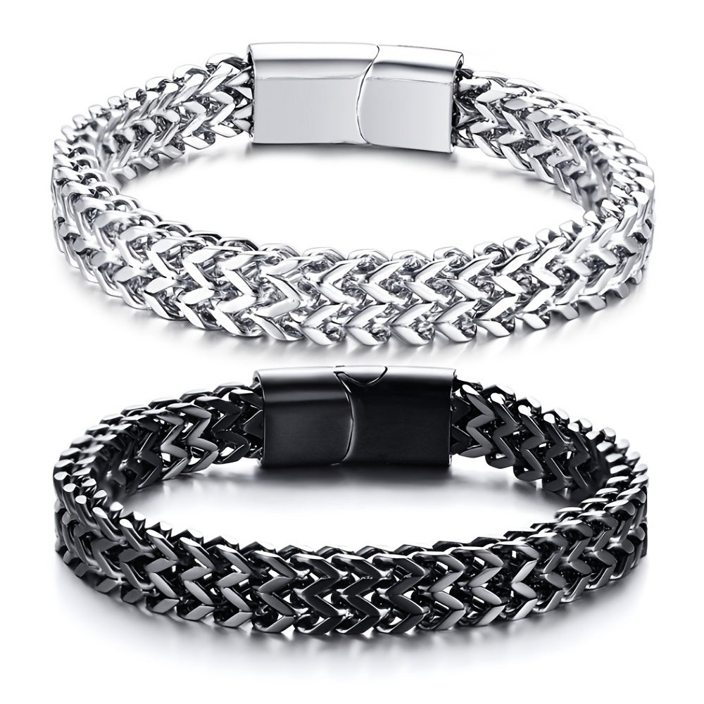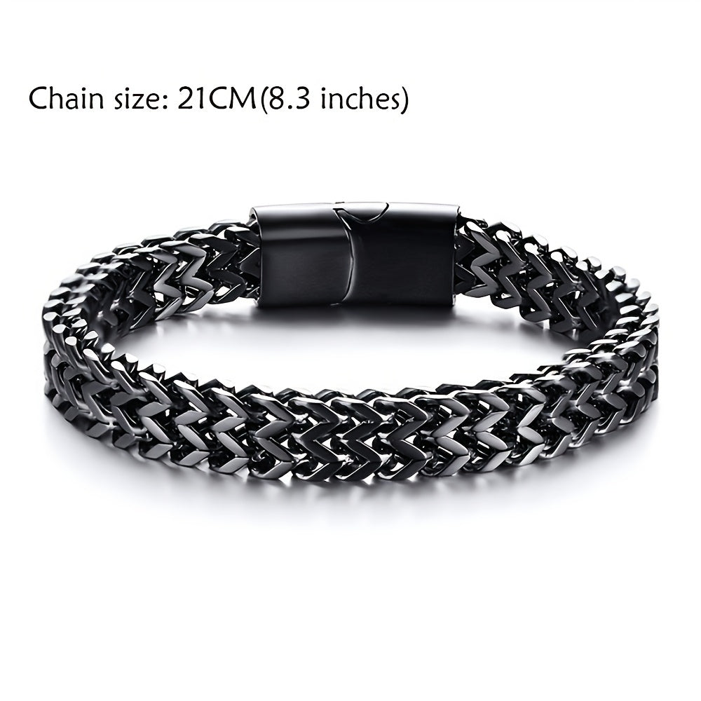 This sleek and stylish stainless steel chain bracelet is perfect for men who love edgy rock jewelry. The snake chain design adds a modern and bold touch to any outfit.