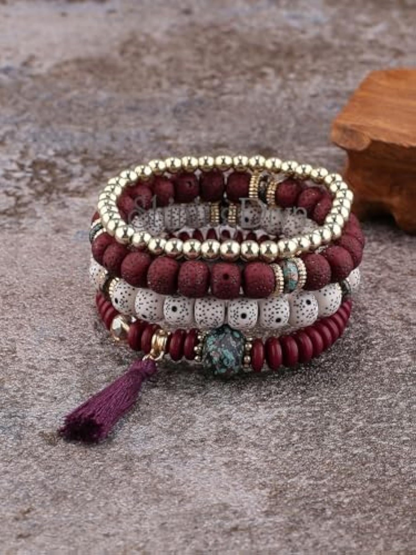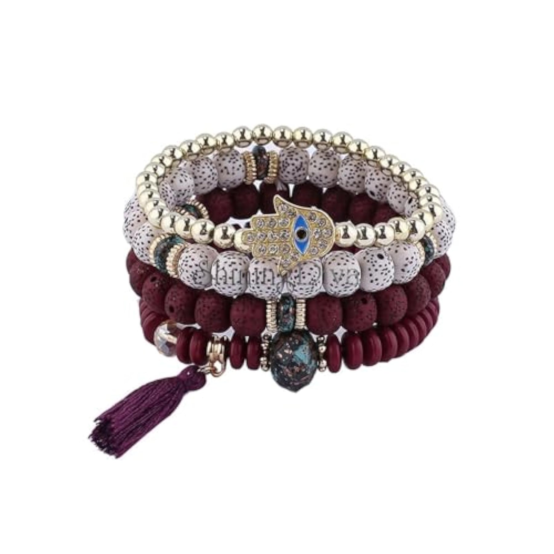 Adorn your wrist with this trendy Evil Eye Boho Bangle Bracelet in maroon color. Perfect for adding a bohemian touch to your look.