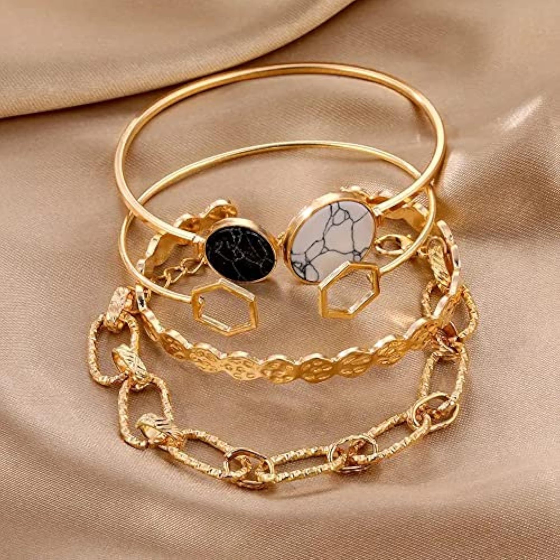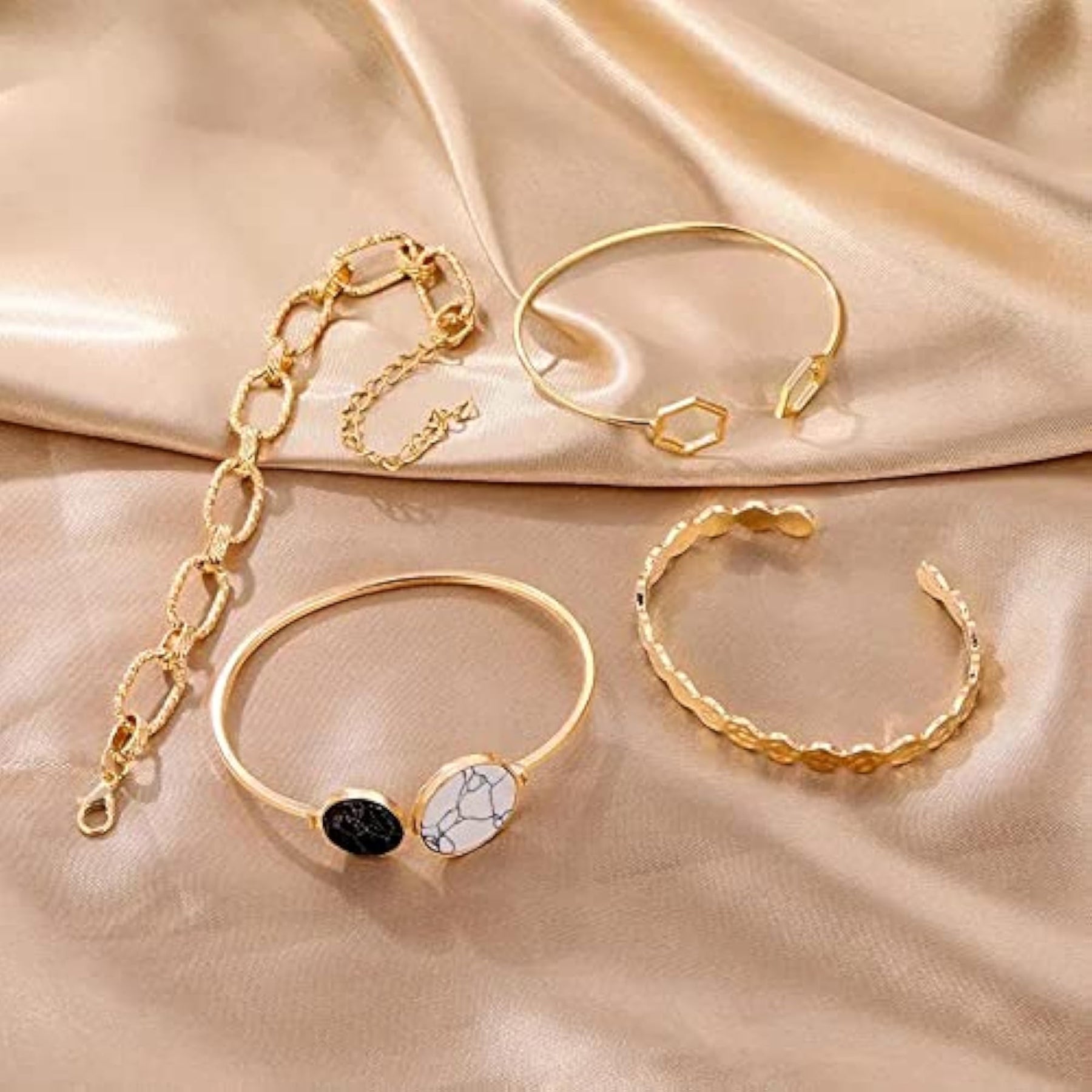 Elevate your style with this set of 4 multilayer plated bangle bracelets. Perfect for adding a touch of sophistication to any outfit.