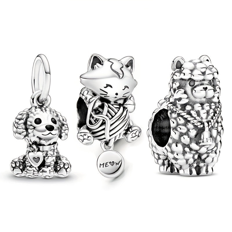 Create adorable charm bracelets with this animal series bead set featuring teddy dog, alpaca, and cat beads. Perfect for designing custom jewelry.