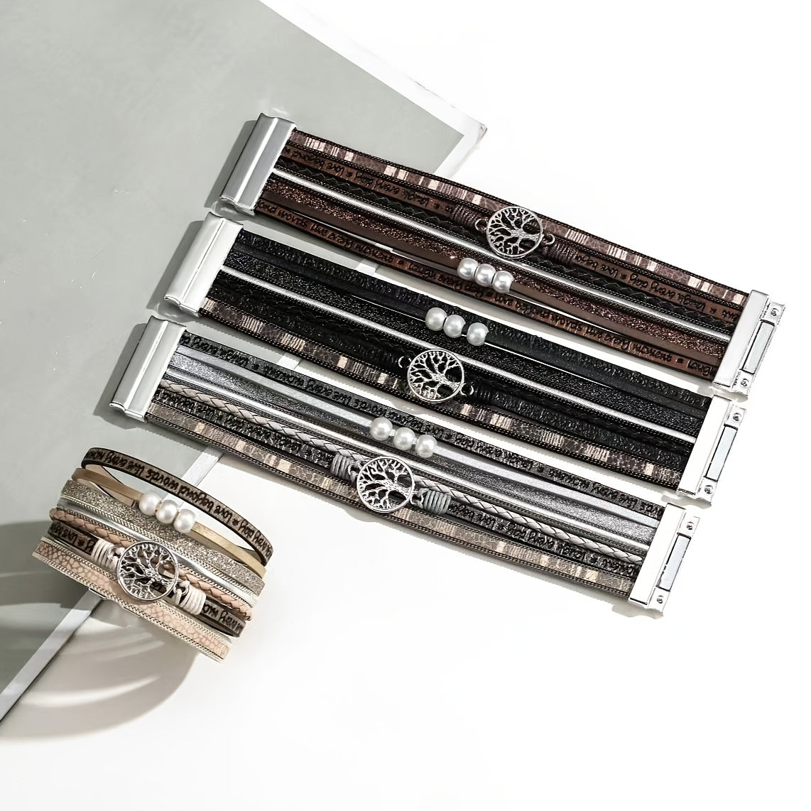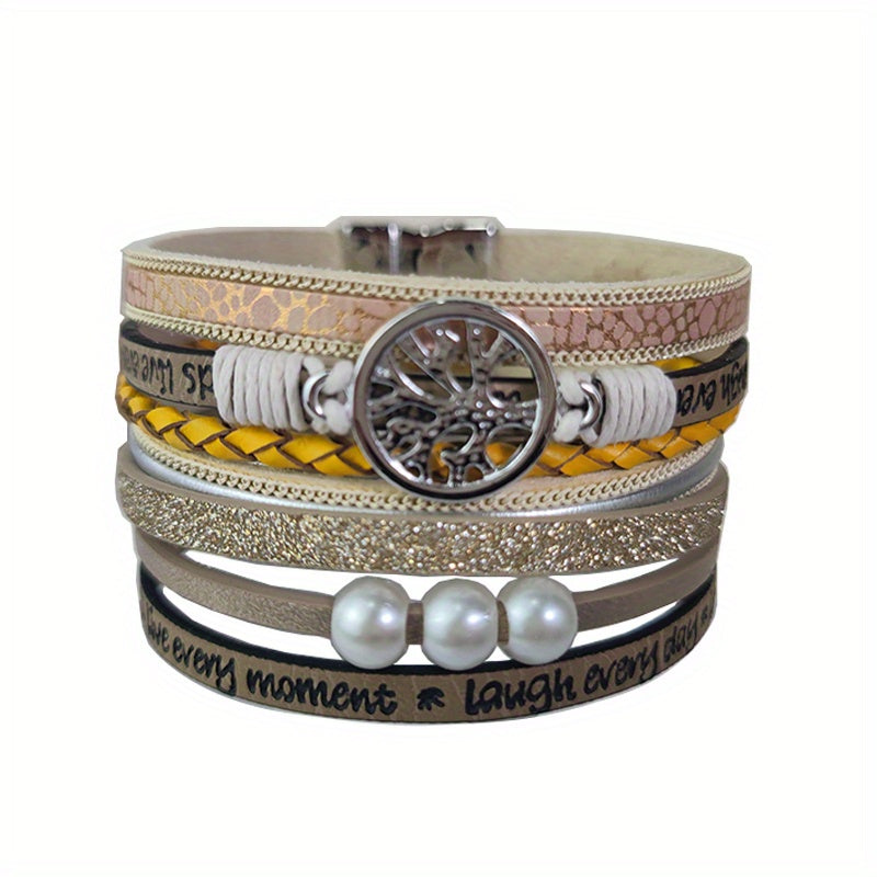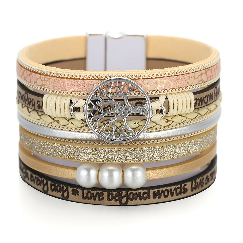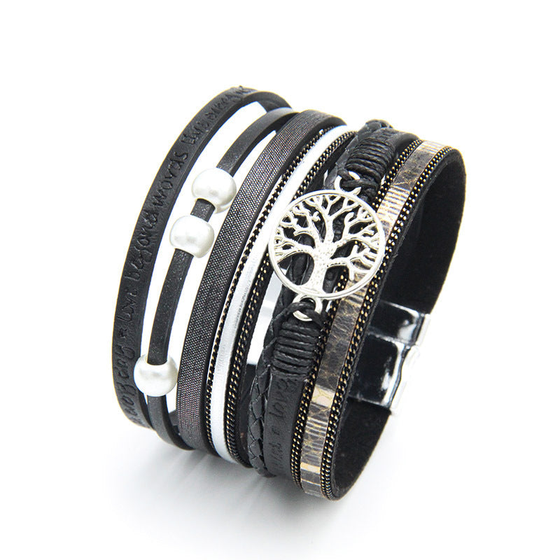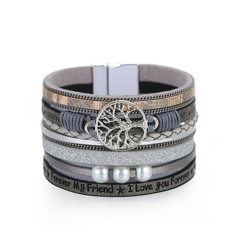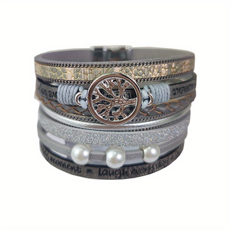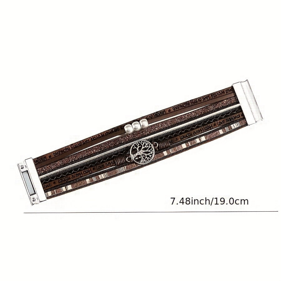 Tree Of Life Leather Bracelet Layered Wrap Bangle Cuff Magnetic Buckle
