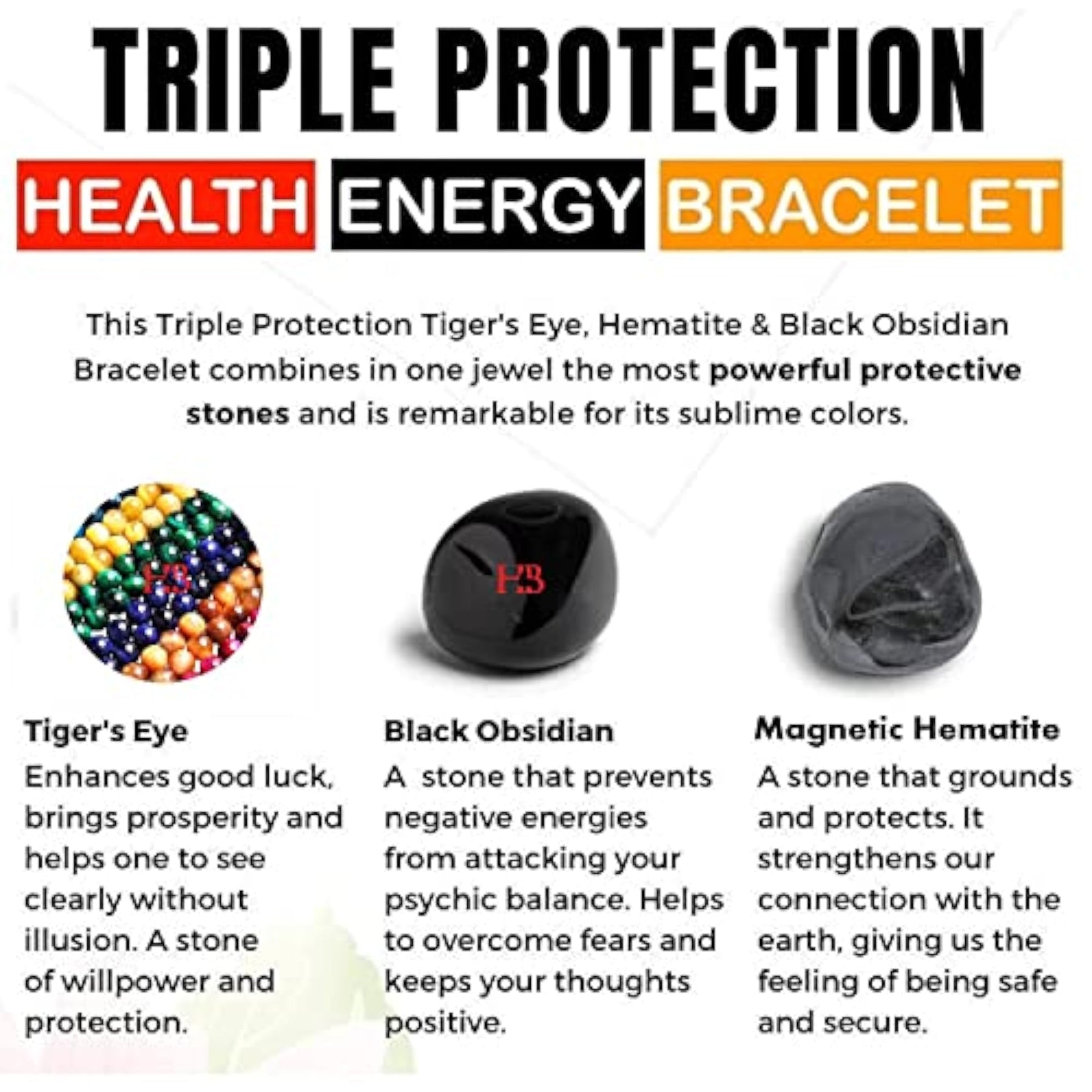 Triple Protection Blue Tiger Eye Beads Bracelet