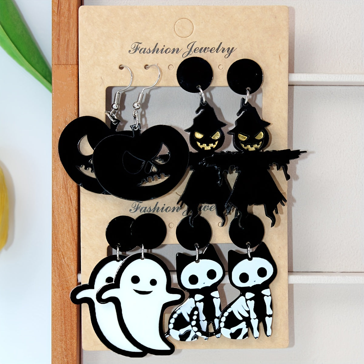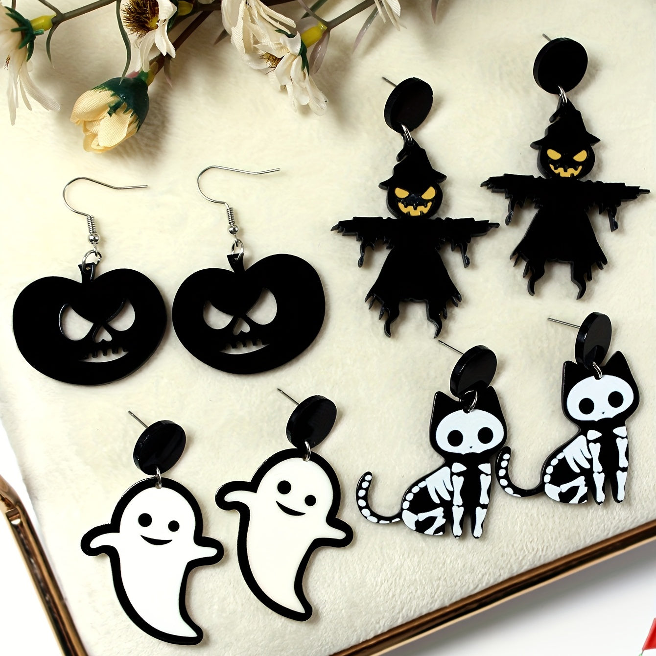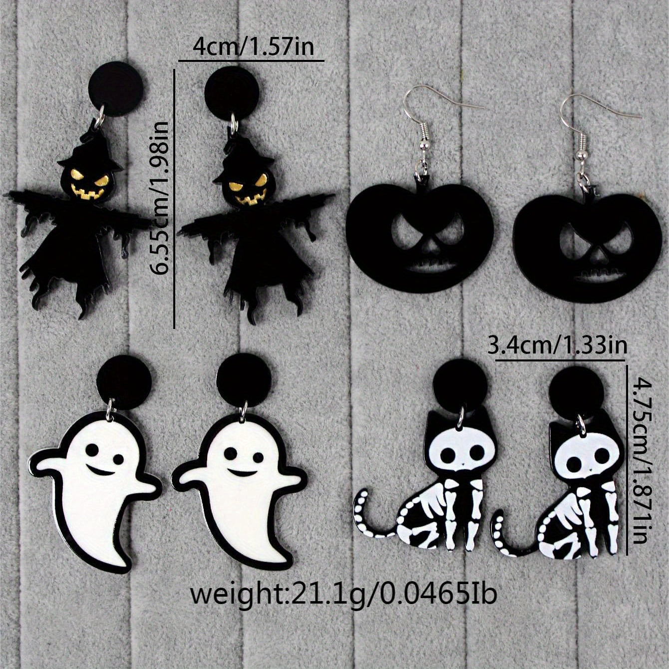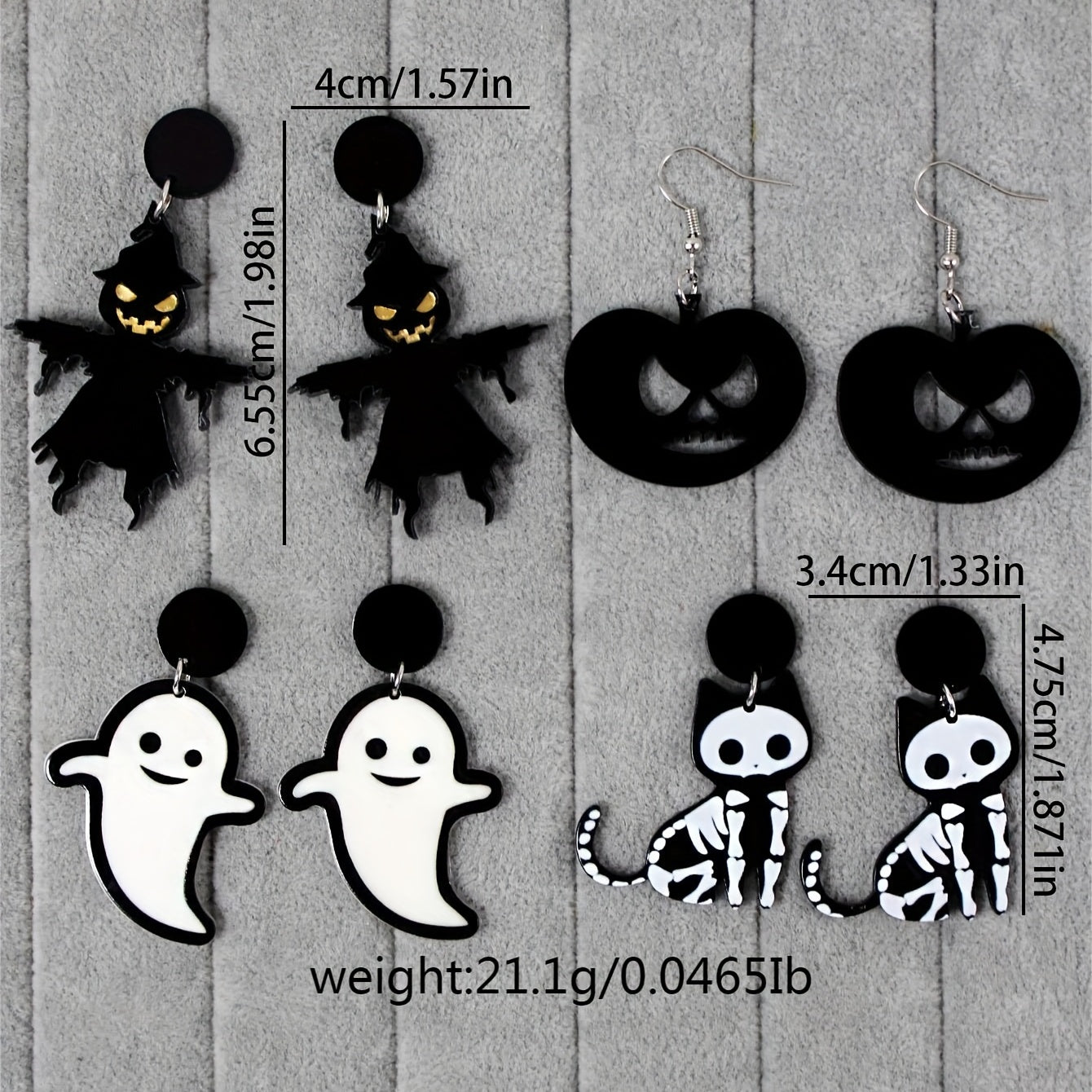 This set includes 4 pairs of earrings featuring Halloween themes like horror pumpkin, ghost, witch, and cat. Made of high-quality resin, these earrings are perfect for adding a spooky touch to your outfit.
