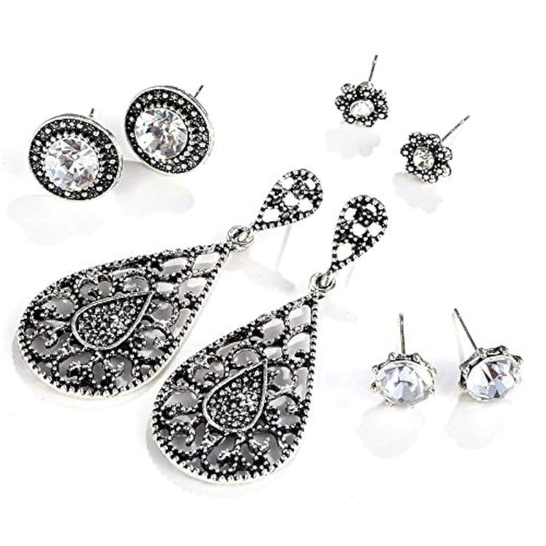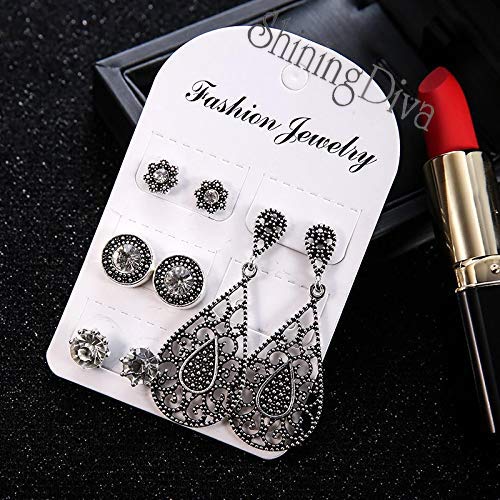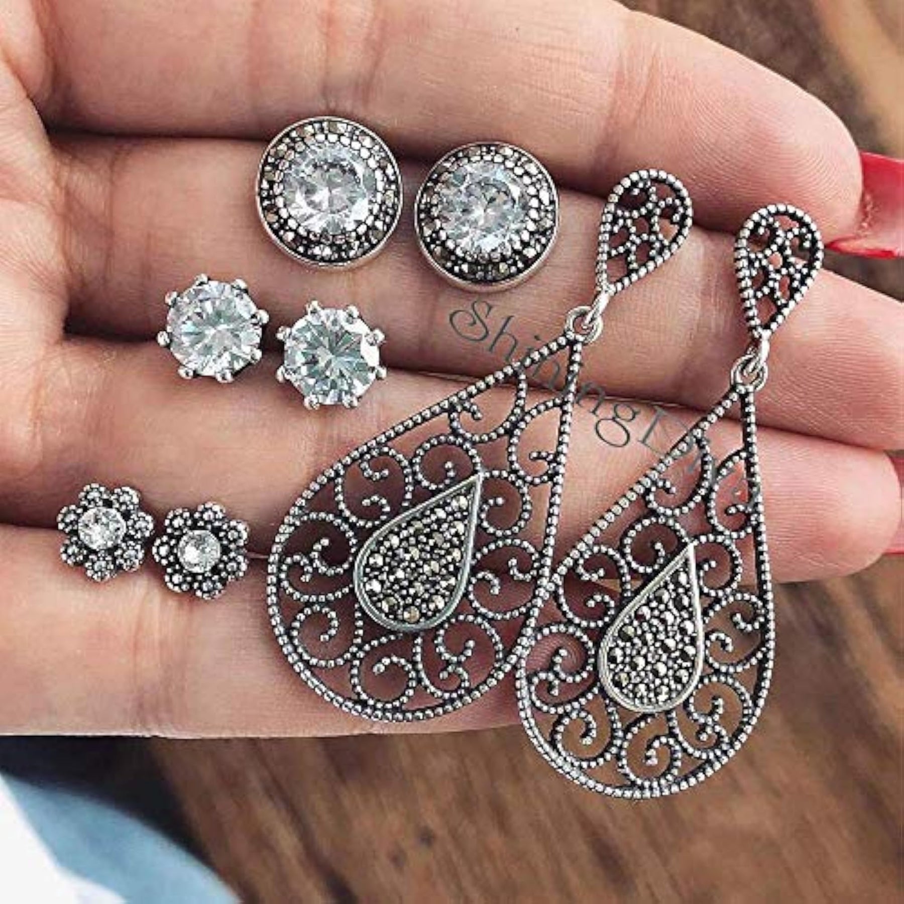 Elevate your style with this combo of 4 pairs of traditional oxidized stud earrings in grey. Perfect for adding a touch of elegance to your outfits.
