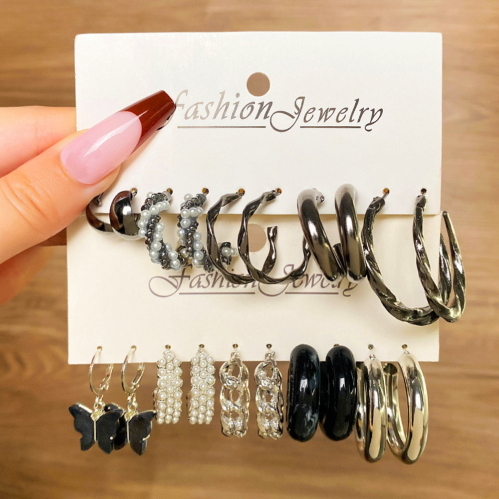 This set includes 5 pairs of earrings featuring beautiful butterfly, pearl, and geometric designs. Perfect for adding a touch of elegance to any outfit.