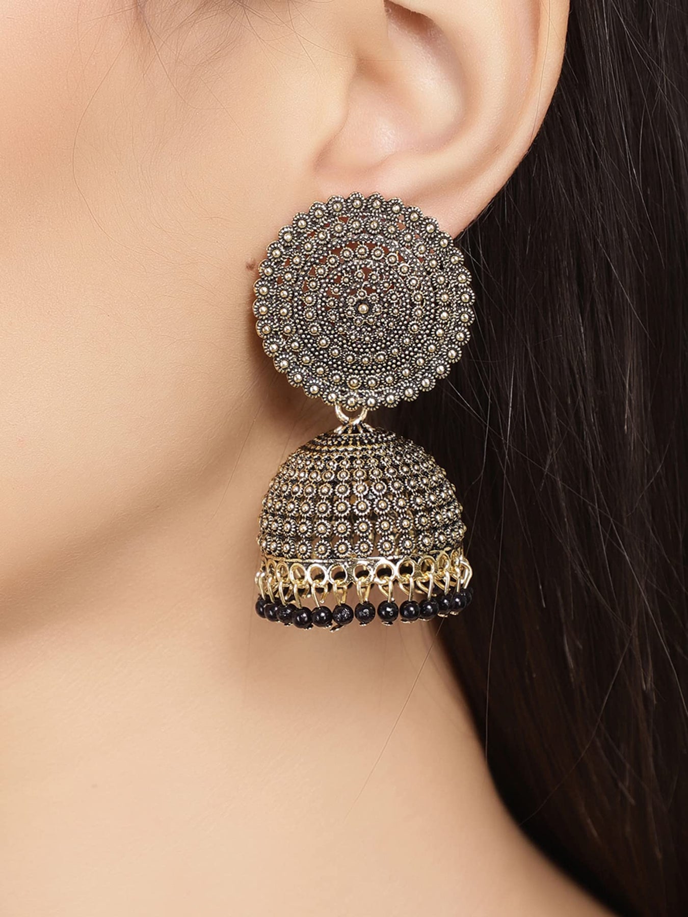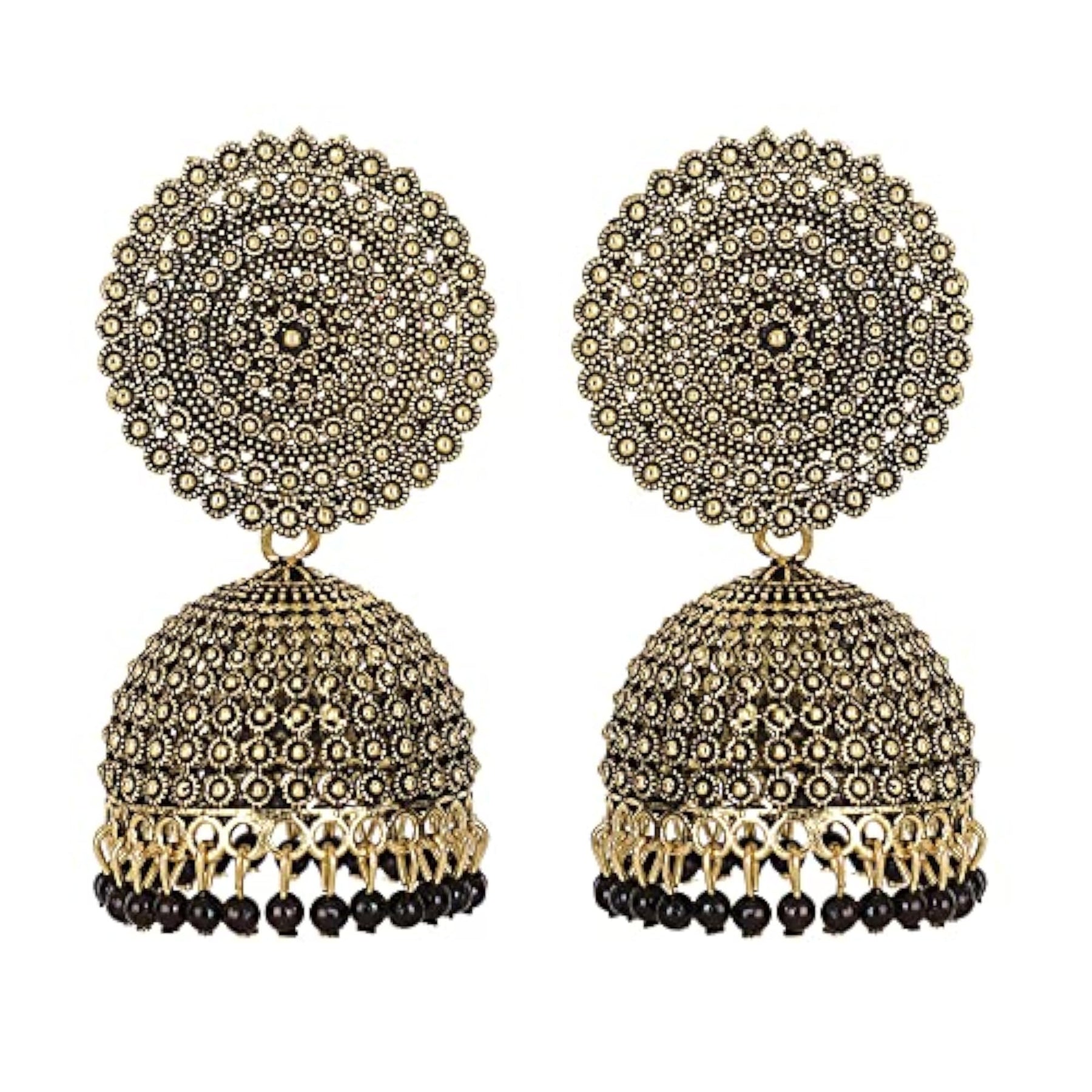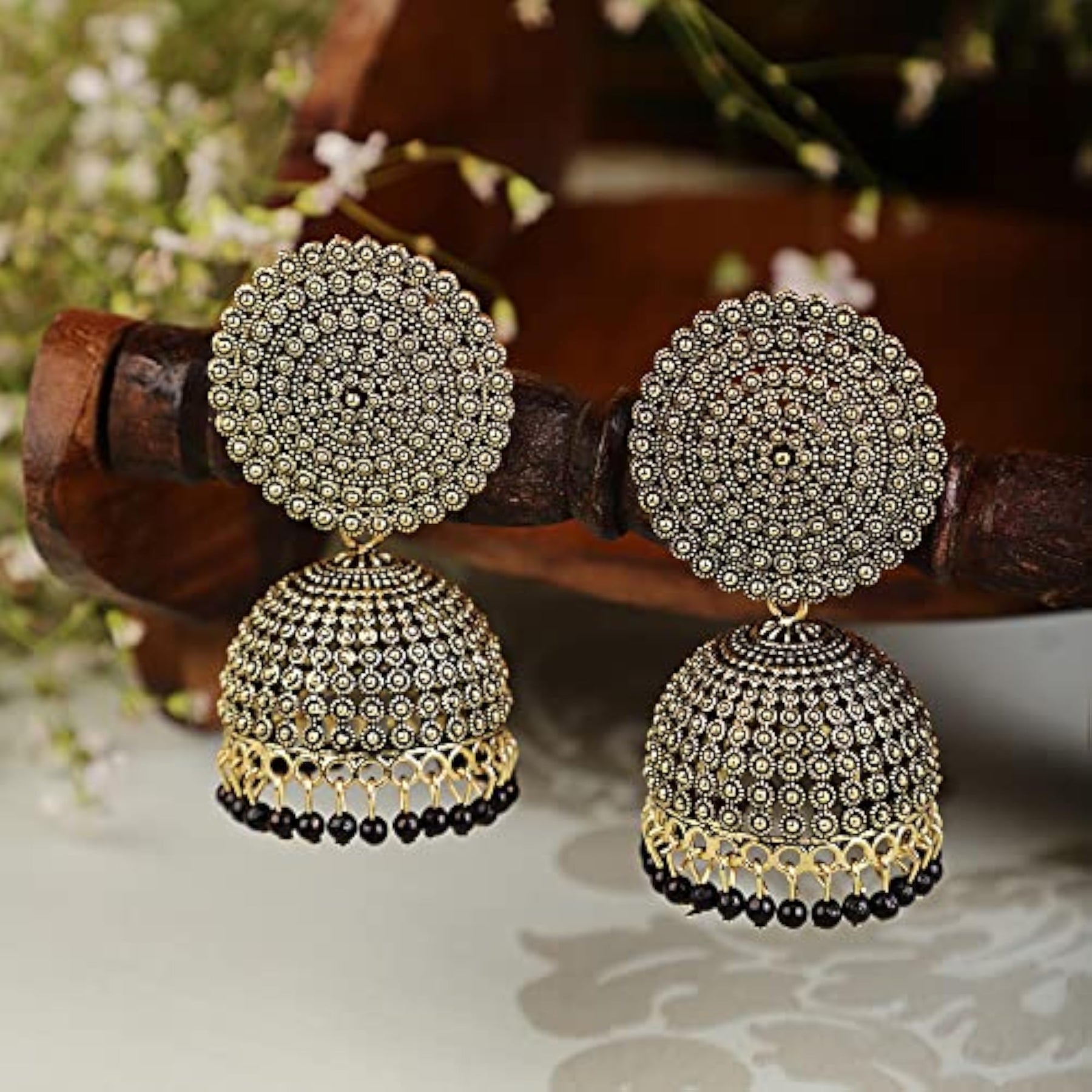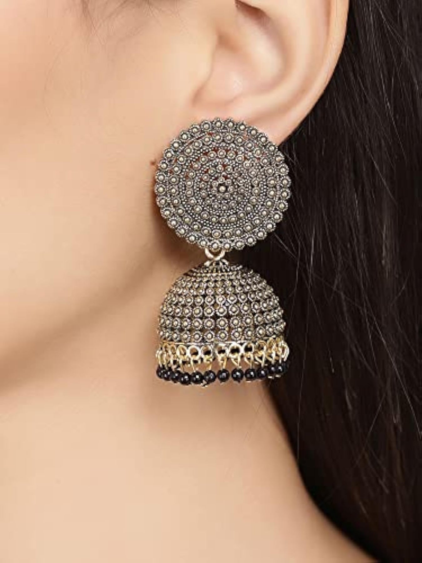 Add a touch of elegance to your outfit with these antique plated jhumki earrings. Perfect for women who love classic jewelry pieces.