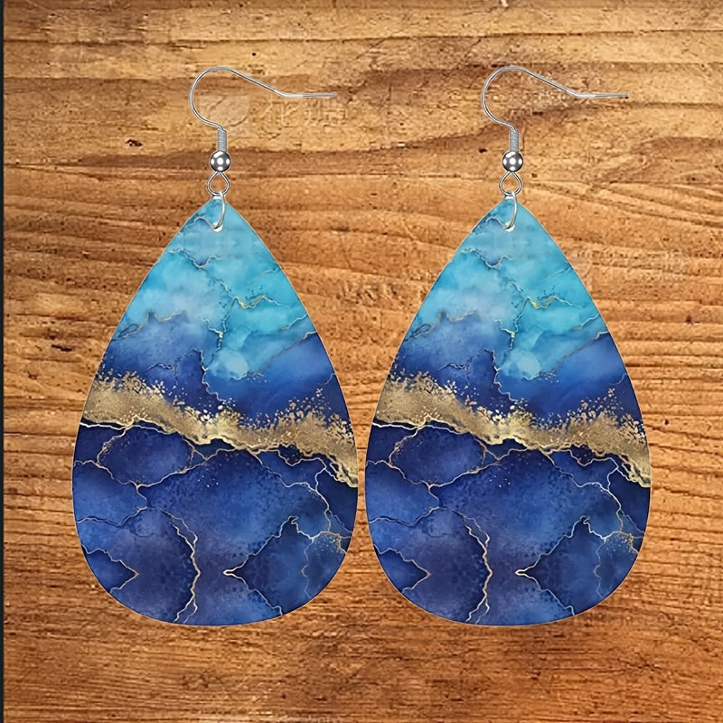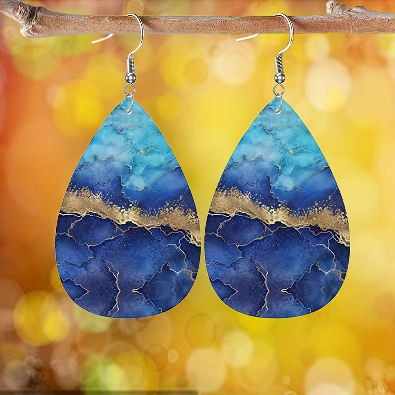 These bohemian style water drop hook earrings are crafted with delicate PU leather, perfect for a casual look or as a gift for men.