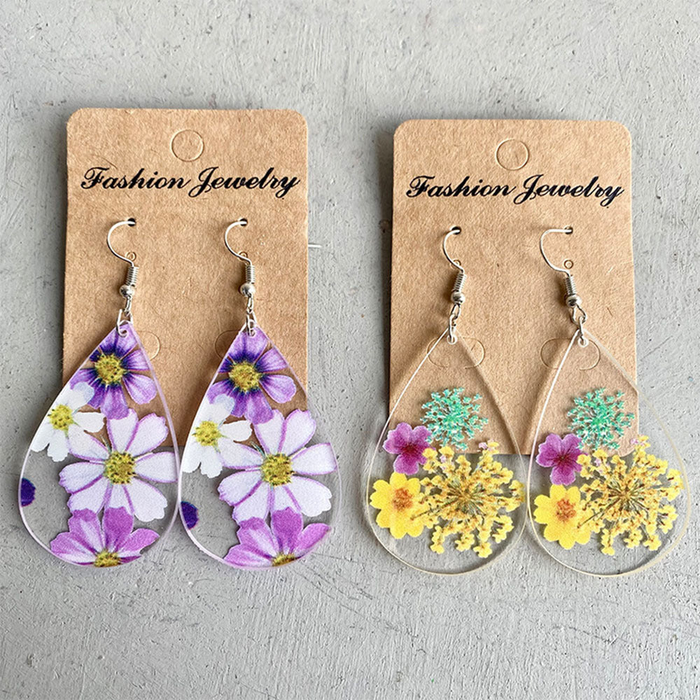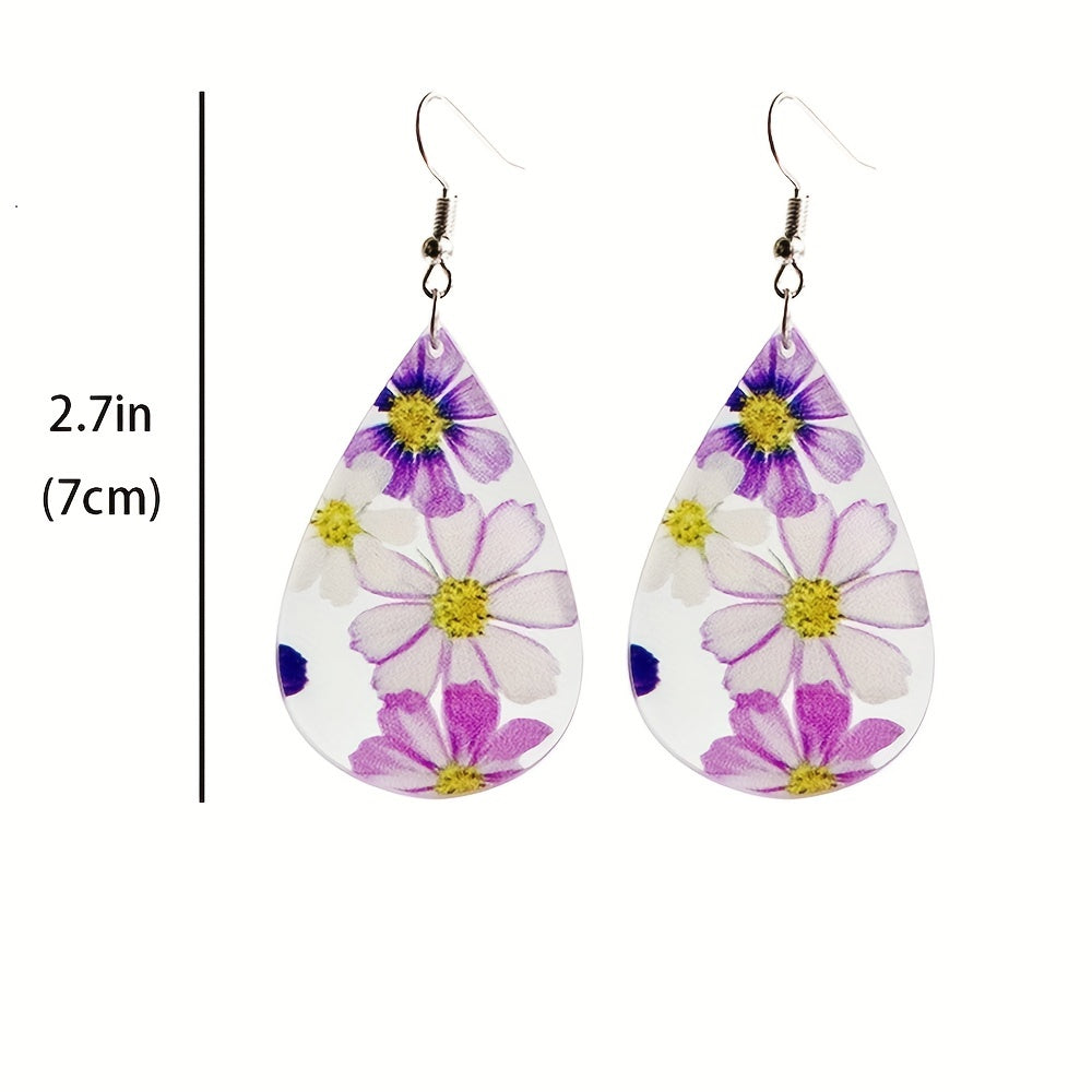 These boho flower print water drop dangle earrings are a perfect Mother's Day gift. Made of acrylic material, they are lightweight and stylish.