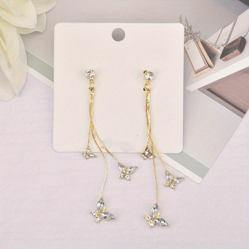 These stylish dangle earrings feature butterfly design with zircon decor, perfect for weddings and special occasions.