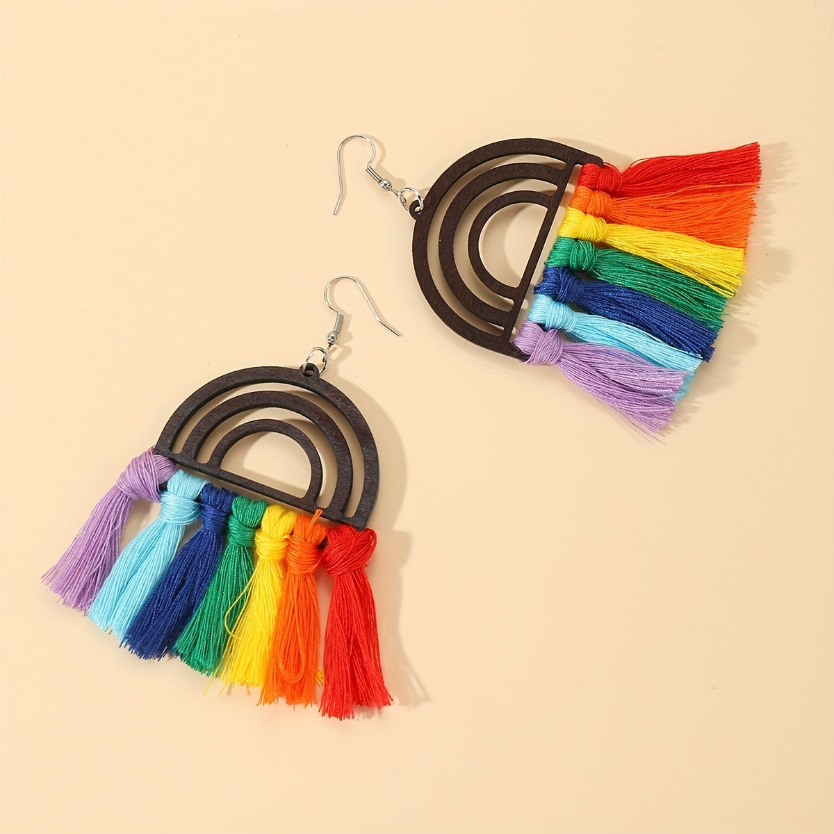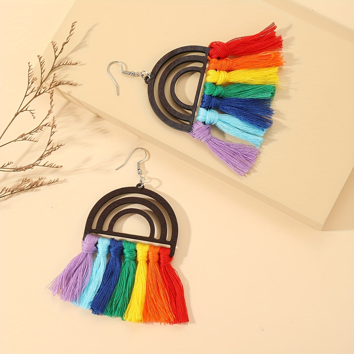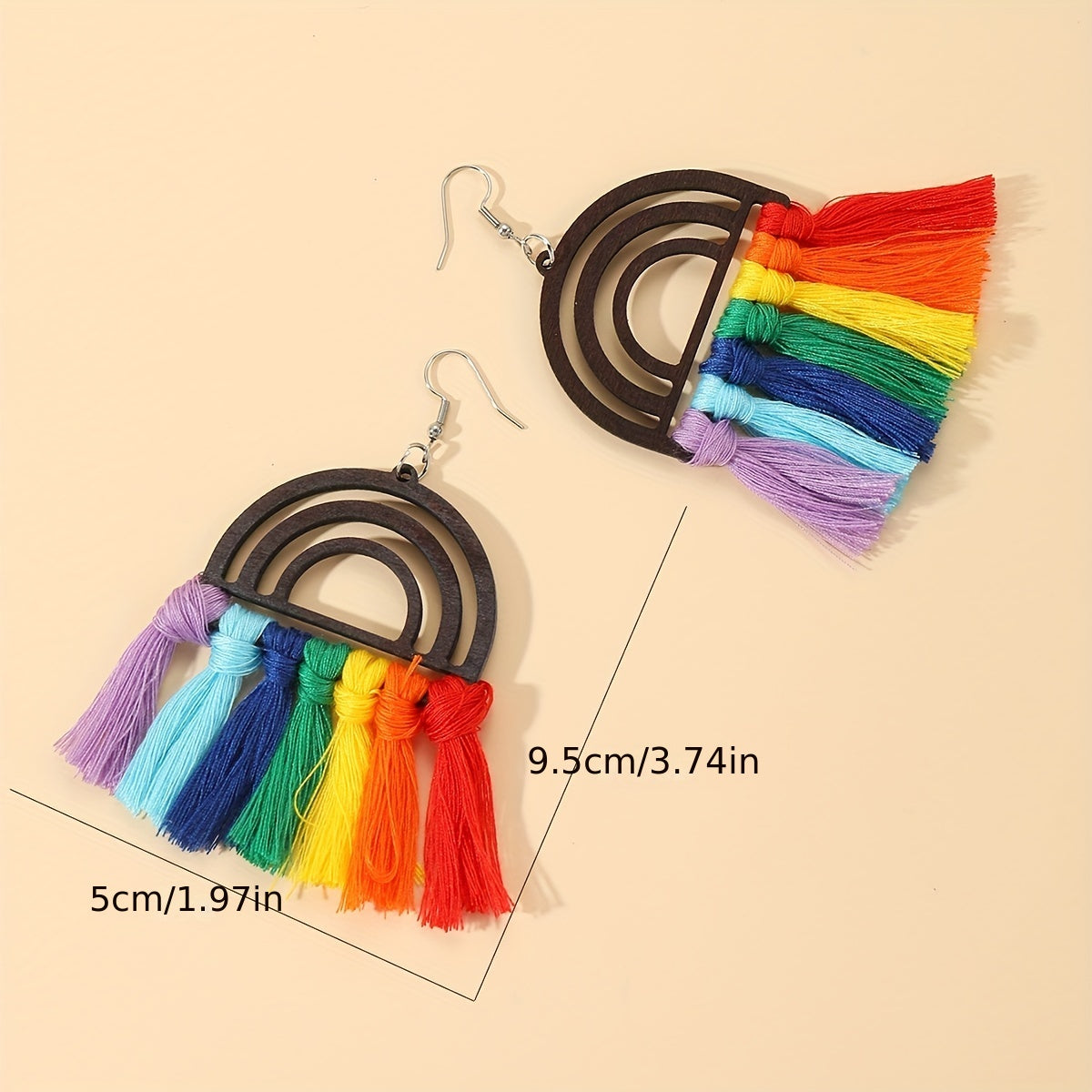 These beautiful earrings feature colorful threads and tassel dangles in a bohemian ethnic style. A perfect delicate gift for a female friend or loved one.