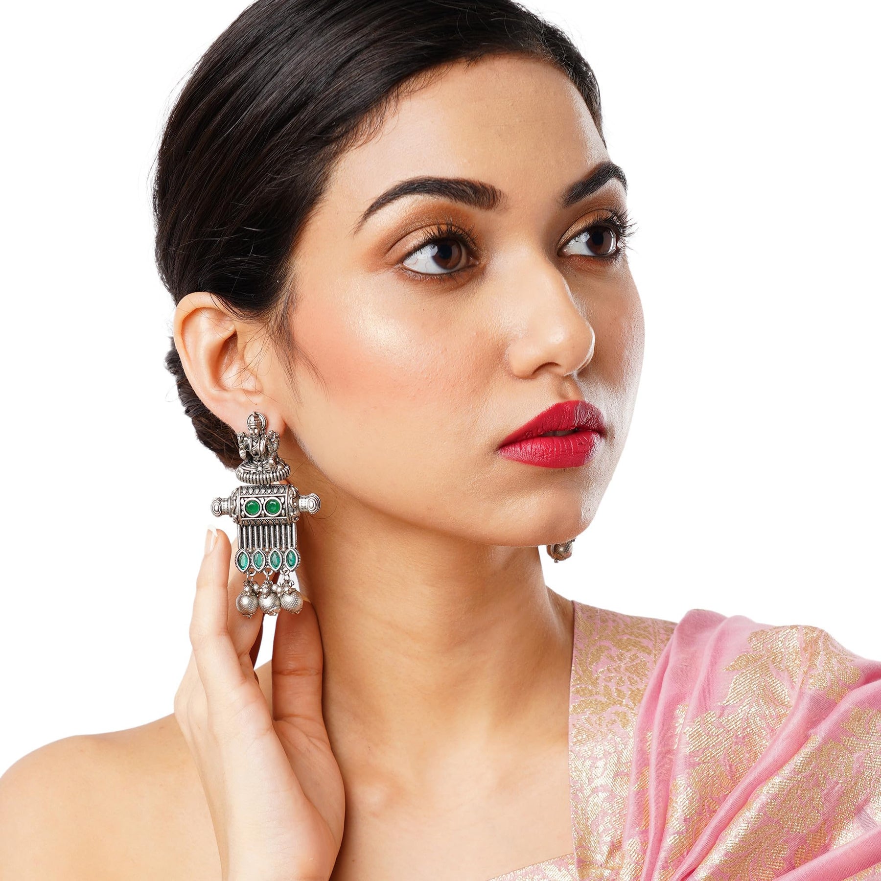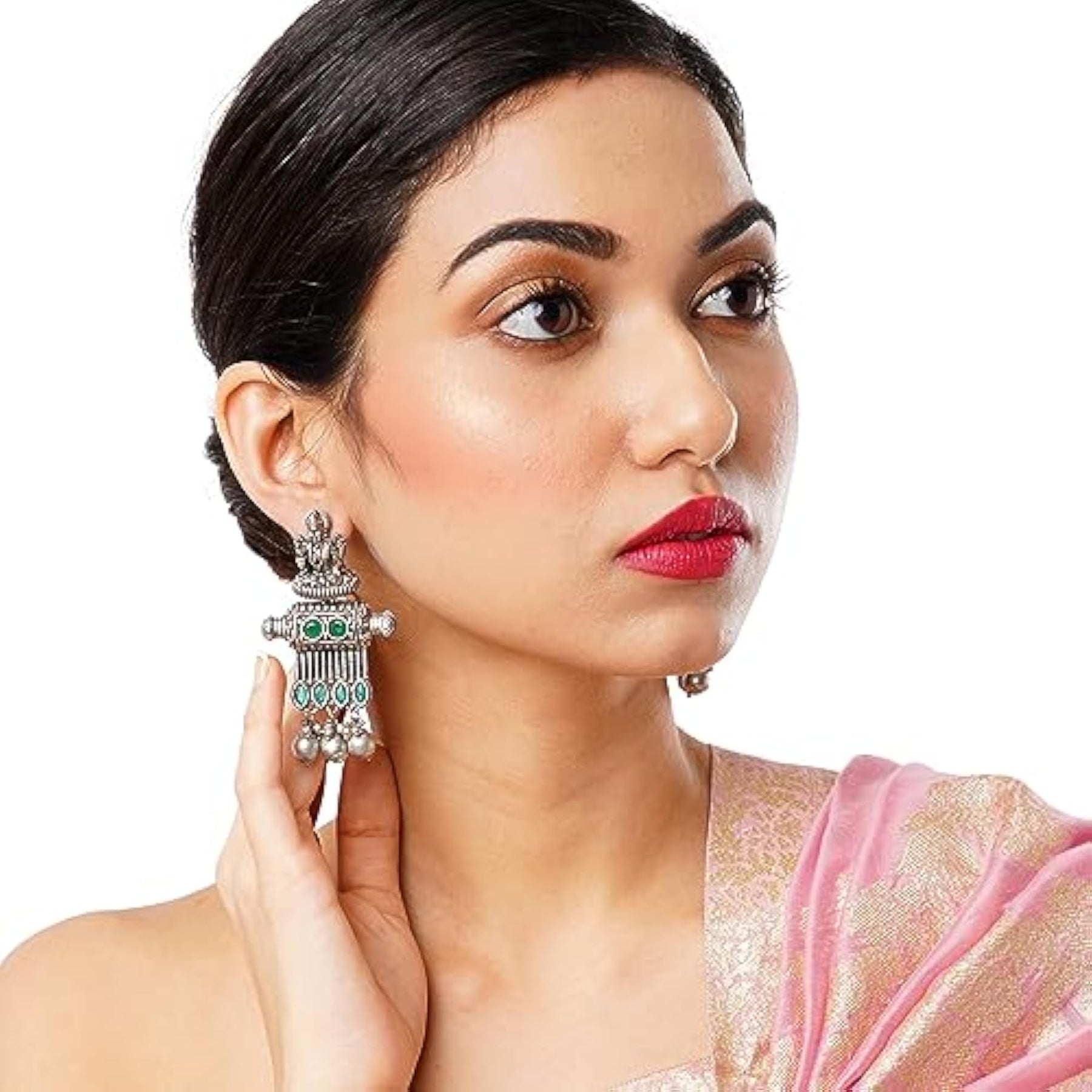 Add a touch of elegance to your outfit with these handcrafted ethnic earrings featuring intricate detailing. Perfect for making a statement.