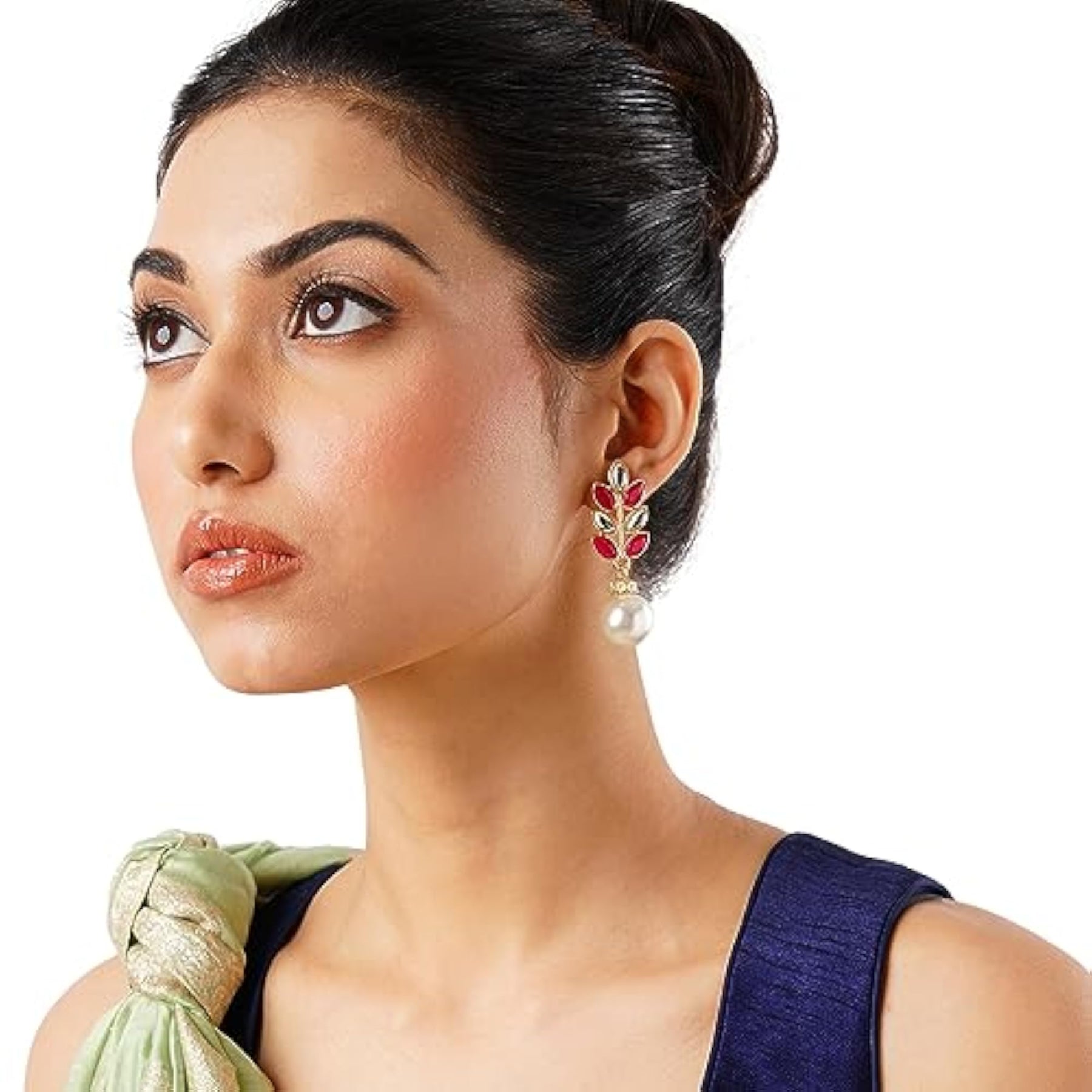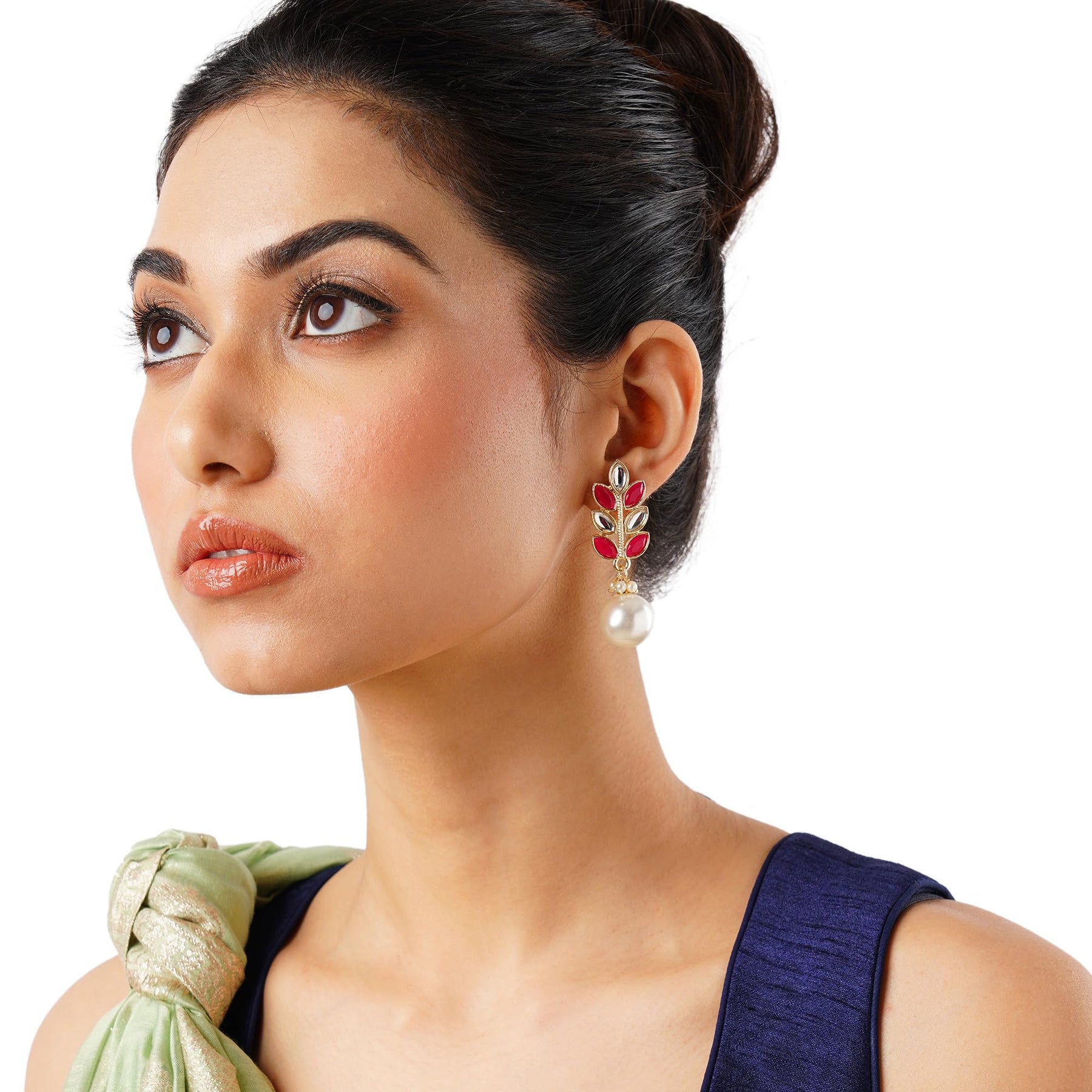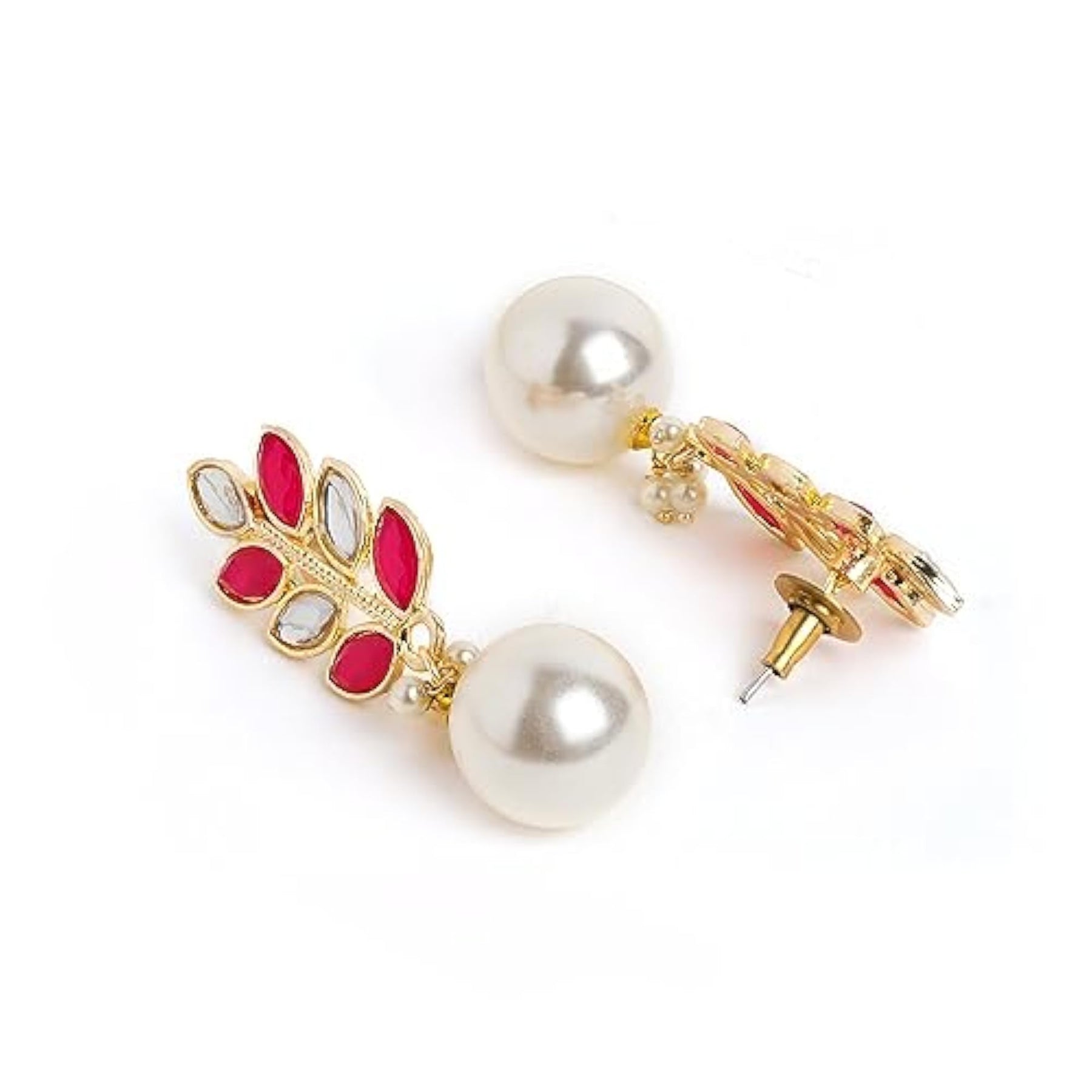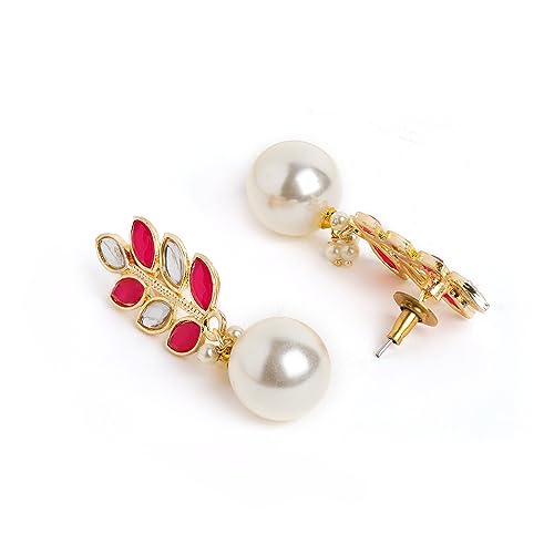 Elegant pearl drop earrings with a traditional touch of jhumka design. Perfect for adding a touch of sophistication to any outfit.