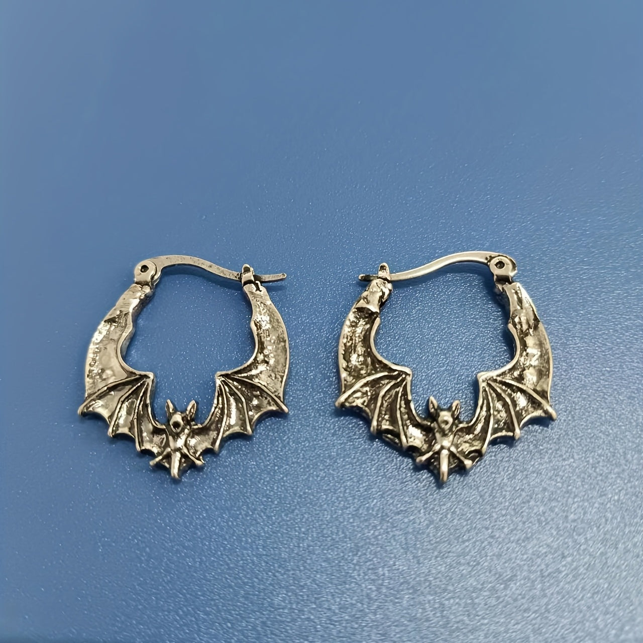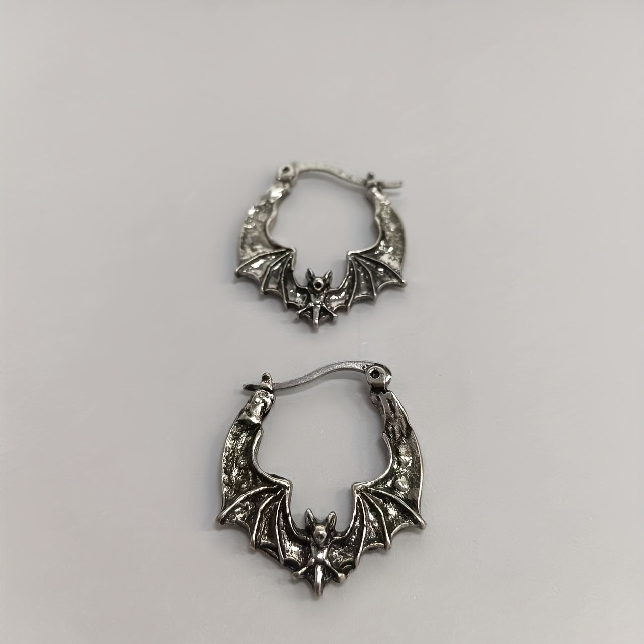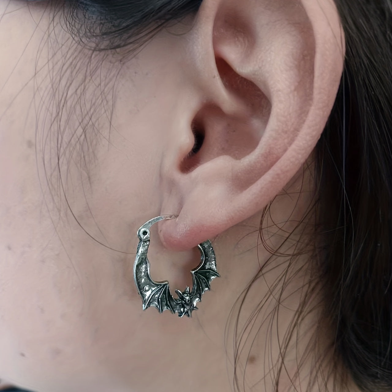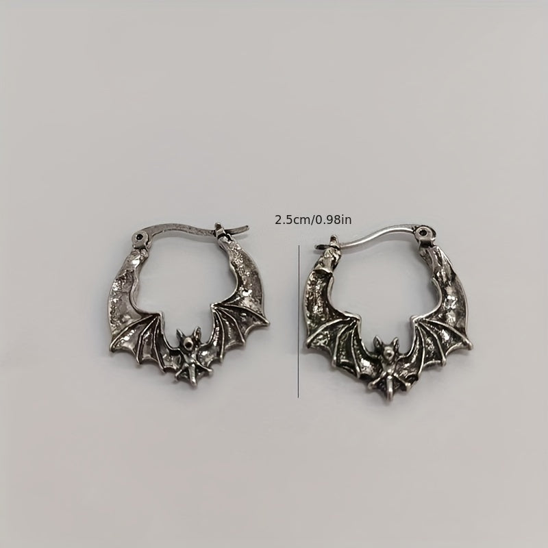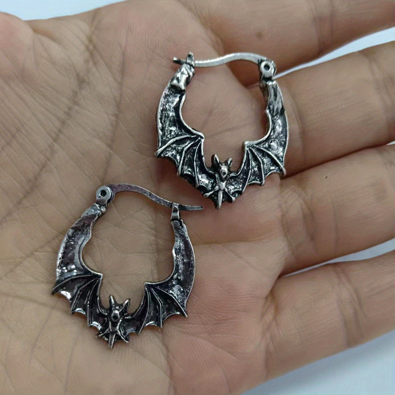 Make a bold statement with these vintage exaggerated bat hoop earrings in silver. Perfect for Halloween parties or gothic-inspired looks.