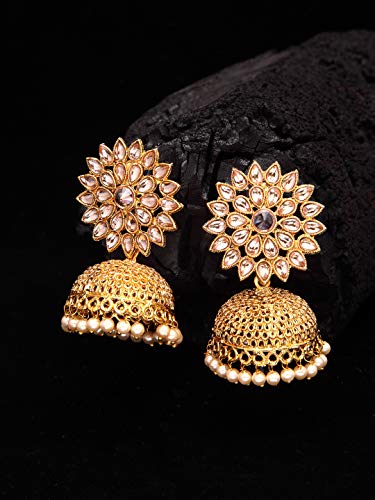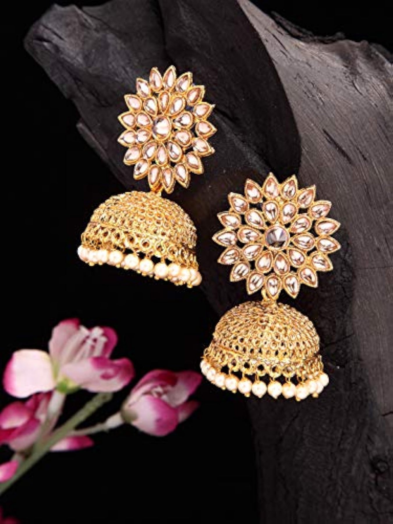 These elegant jhumki earrings are adorned with pearls for a traditional yet stylish look.