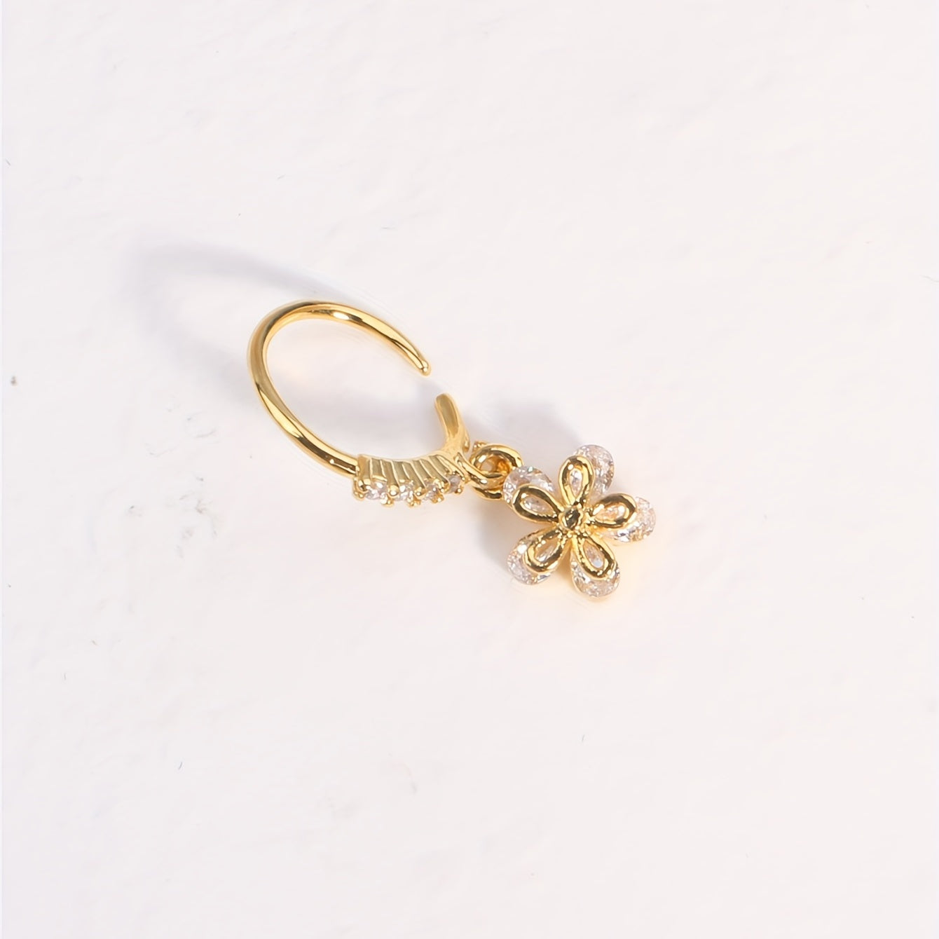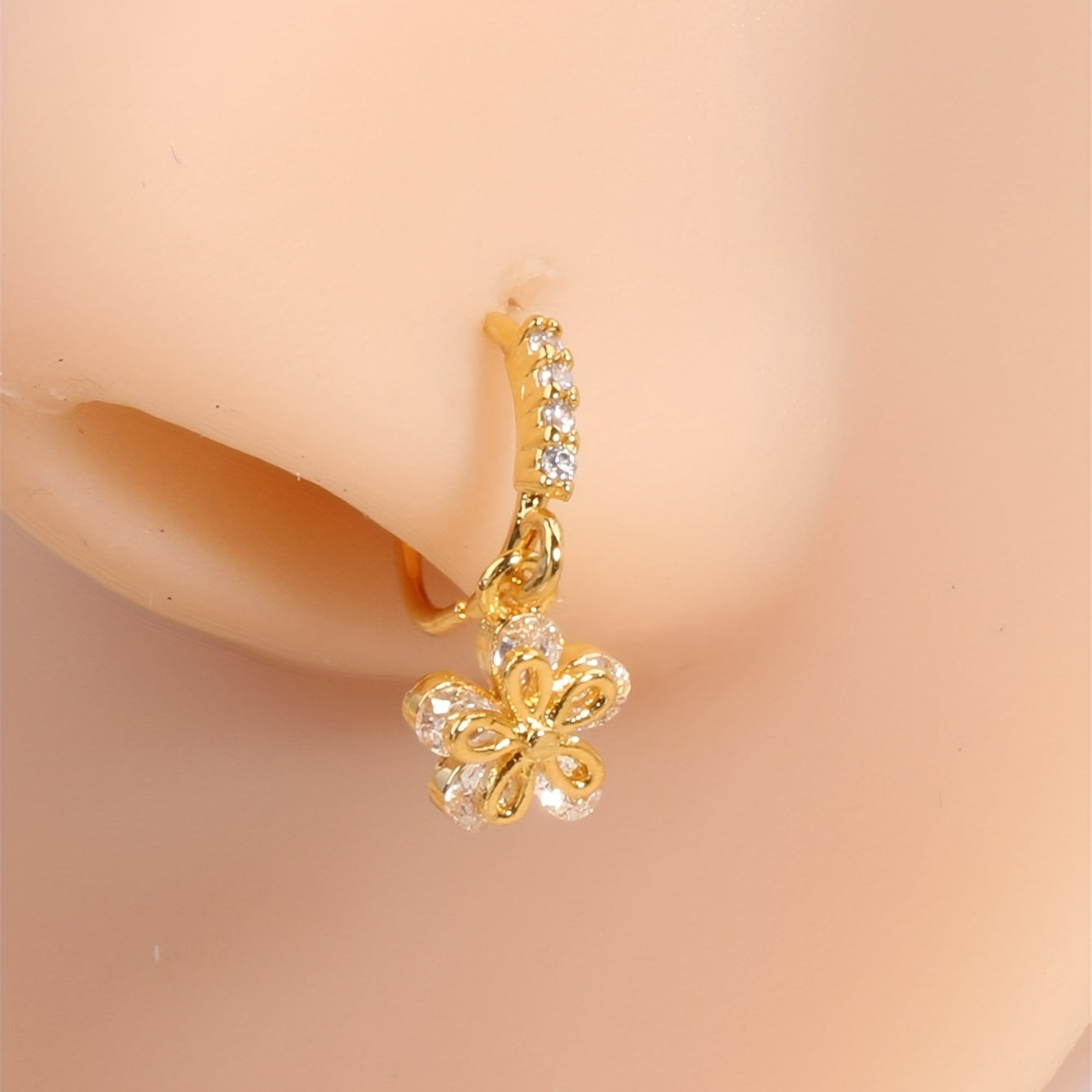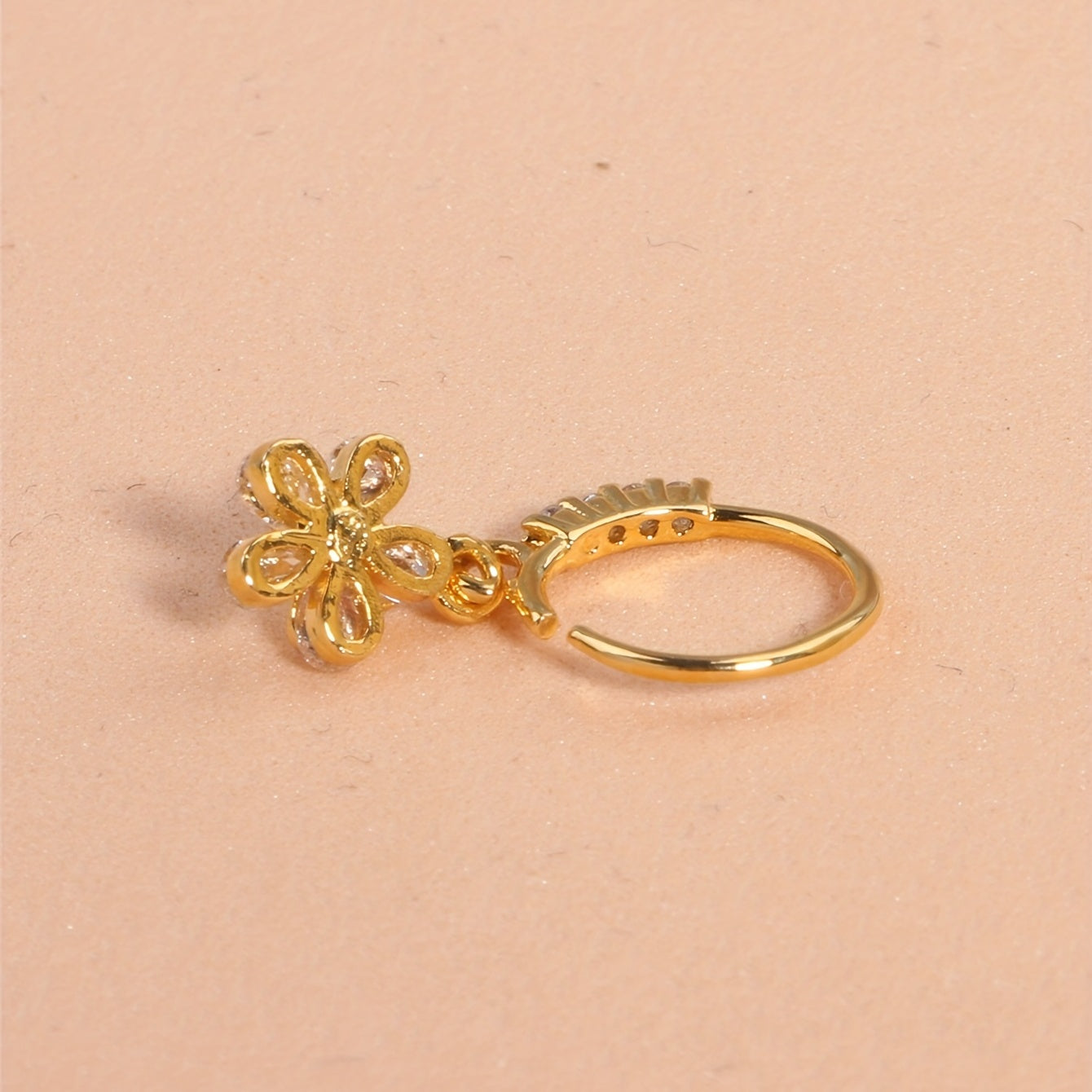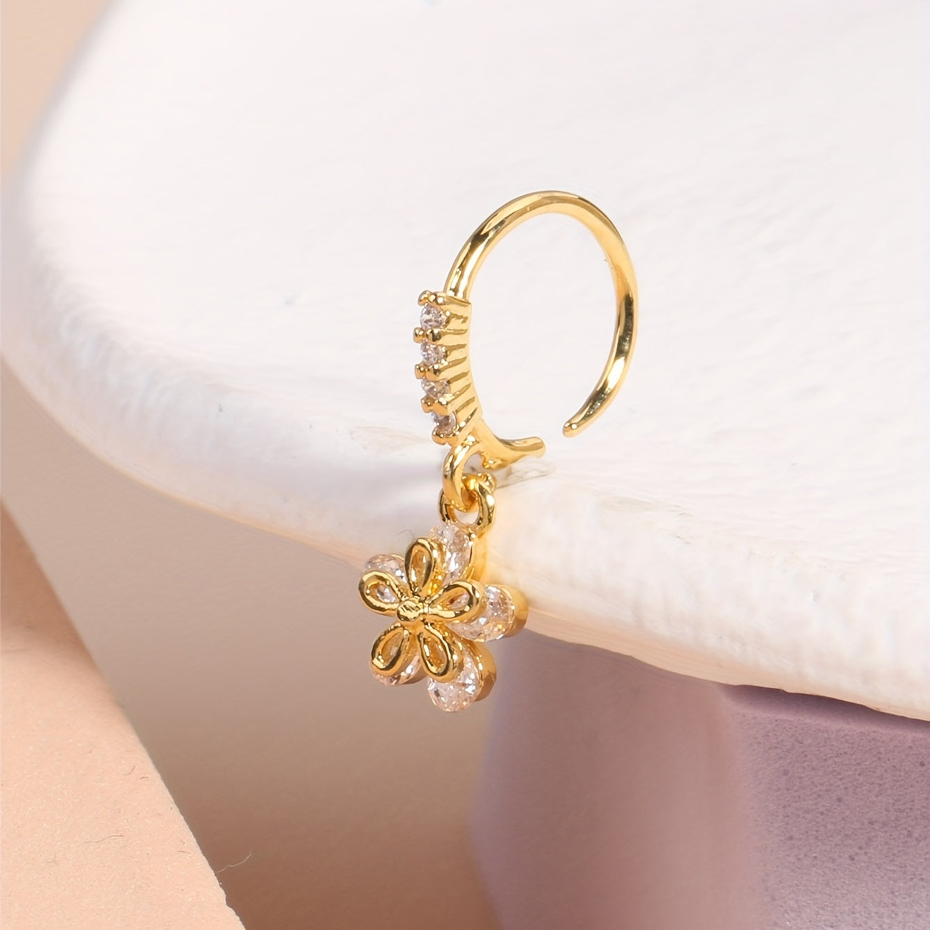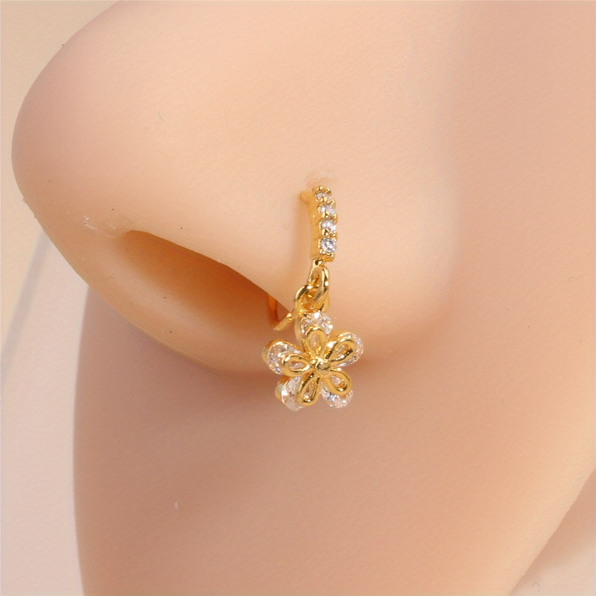 Stylish flower shape pendant nose hoop ring that can also be used as a cartilage earring. Perfect for women's body piercing jewelry.