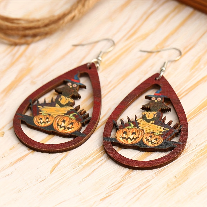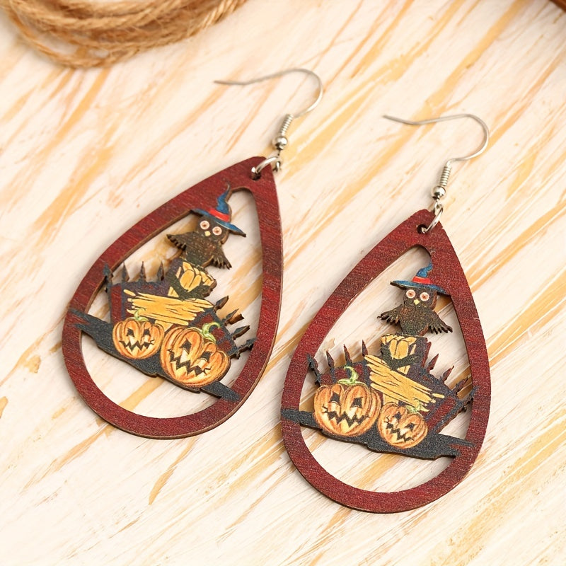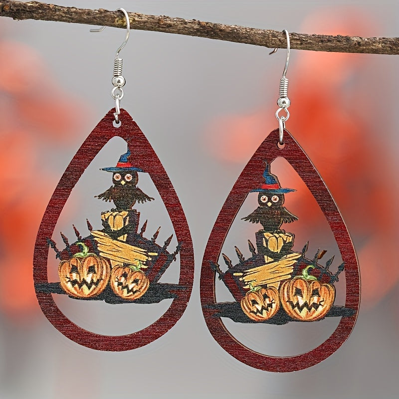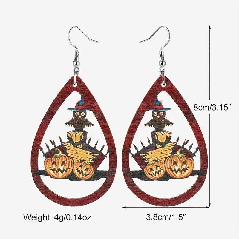 Get in the Halloween spirit with these hilarious owl and pumpkin car teardrop dangle earrings. Perfect for anyone who loves a mix of goth style and humor. Ideal gift for females.