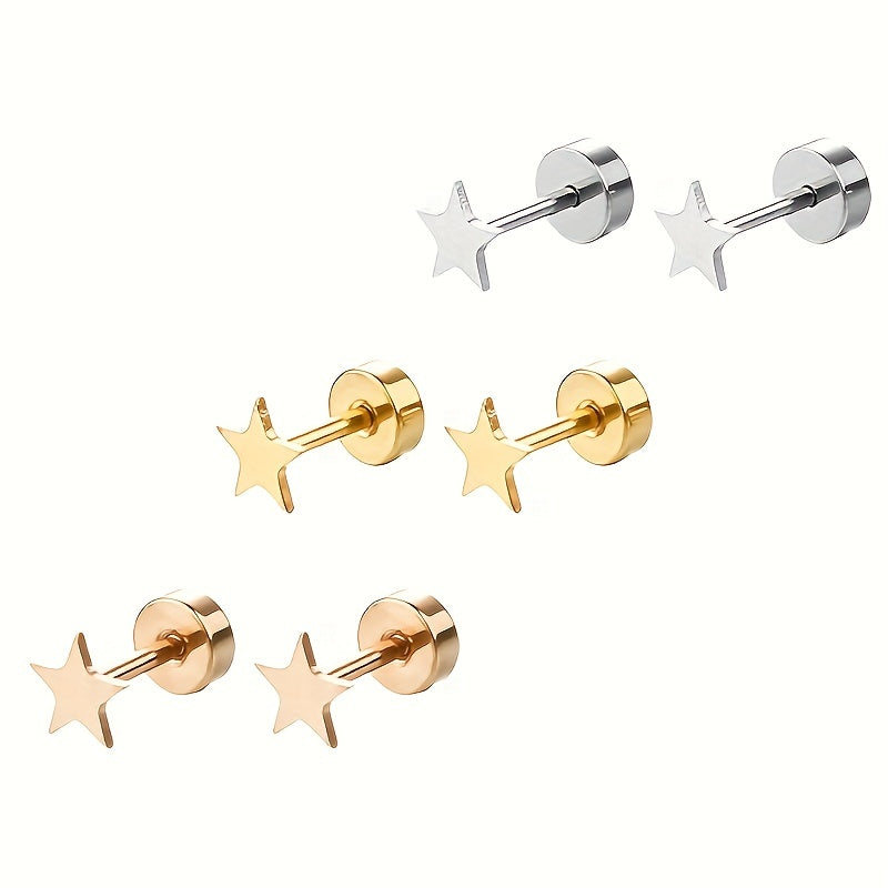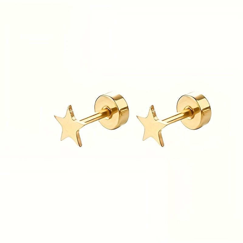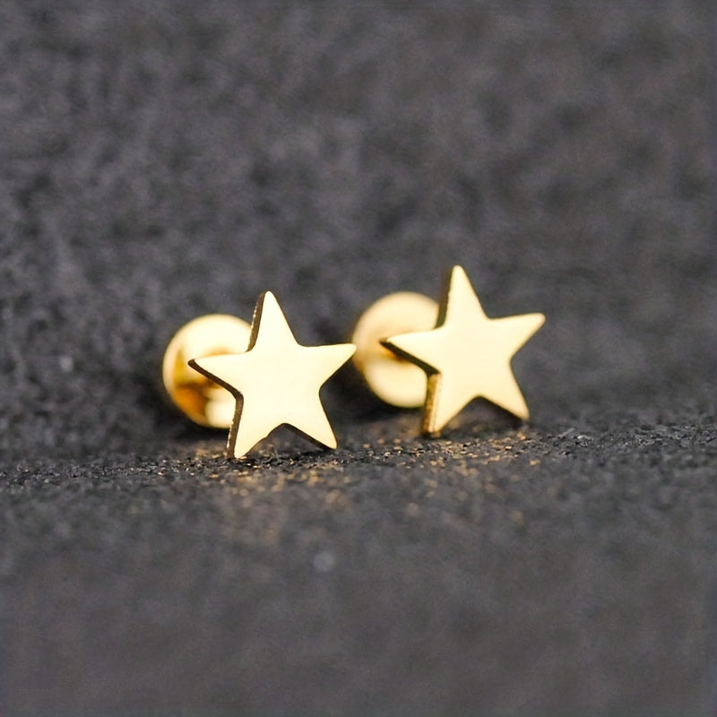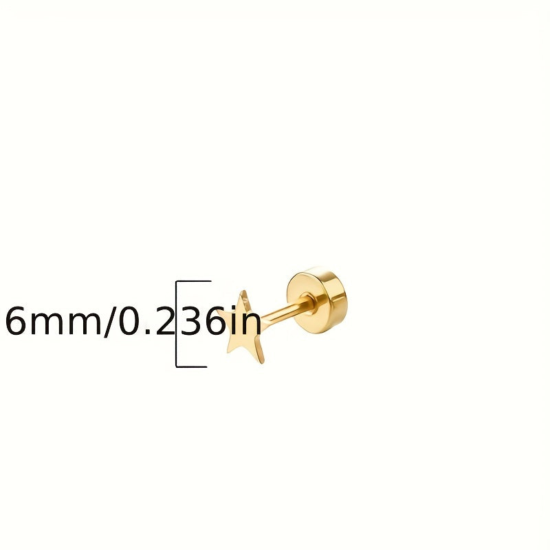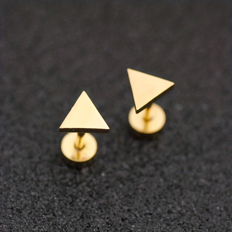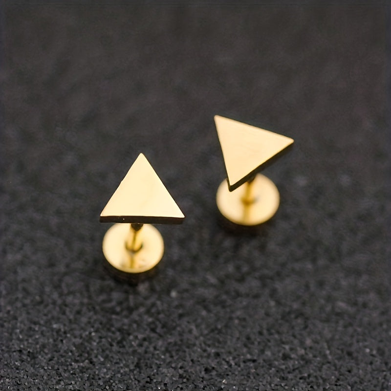 Elevate your style with these small stud earrings featuring a geometric shape design. Made of stainless steel with a golden plating, these earrings are perfect for adding a touch of elegance to your look.