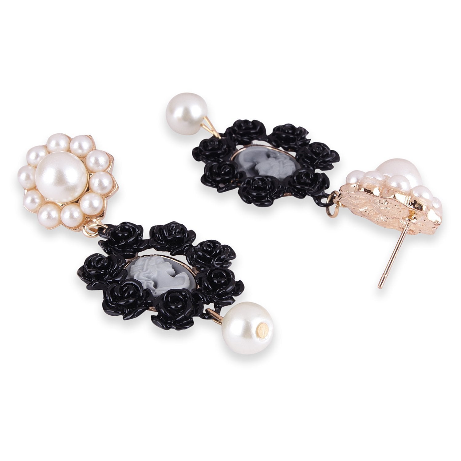 These elegant gold dangle earrings are adorned with sparkling gems, perfect for any occasion.