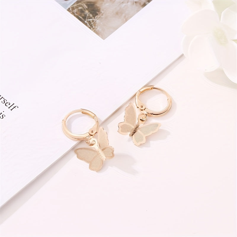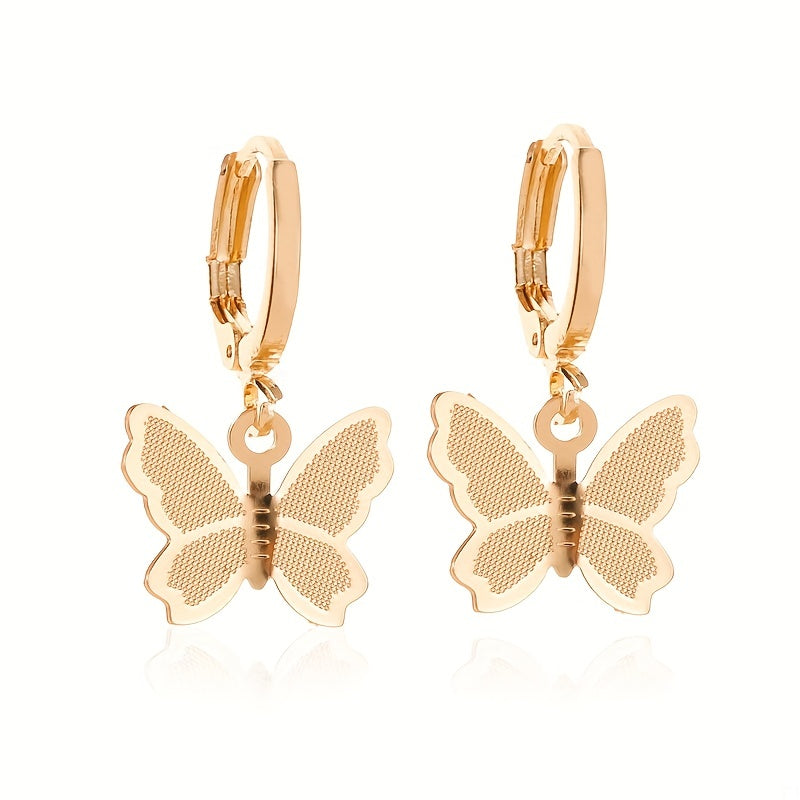 These delicate dangle earrings feature a stunning golden butterfly pendant with a frosted finish, perfect for adding a retro flair to any outfit. They make a thoughtful gift for females who appreciate unique accessories.
