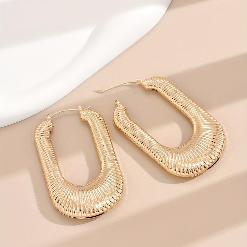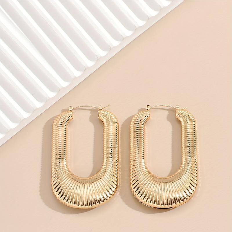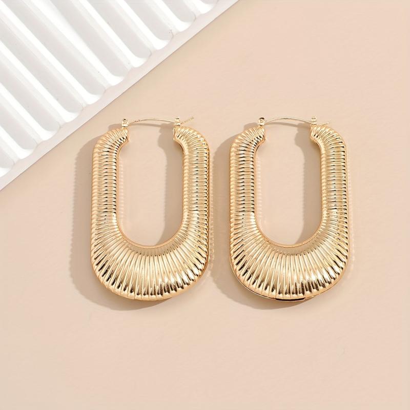 Add a touch of retro elegance to your outfit with these golden geometric dangle earrings. They are made of high-quality alloy and are a perfect accessory for the holidays or as a gift for a special woman in your life.