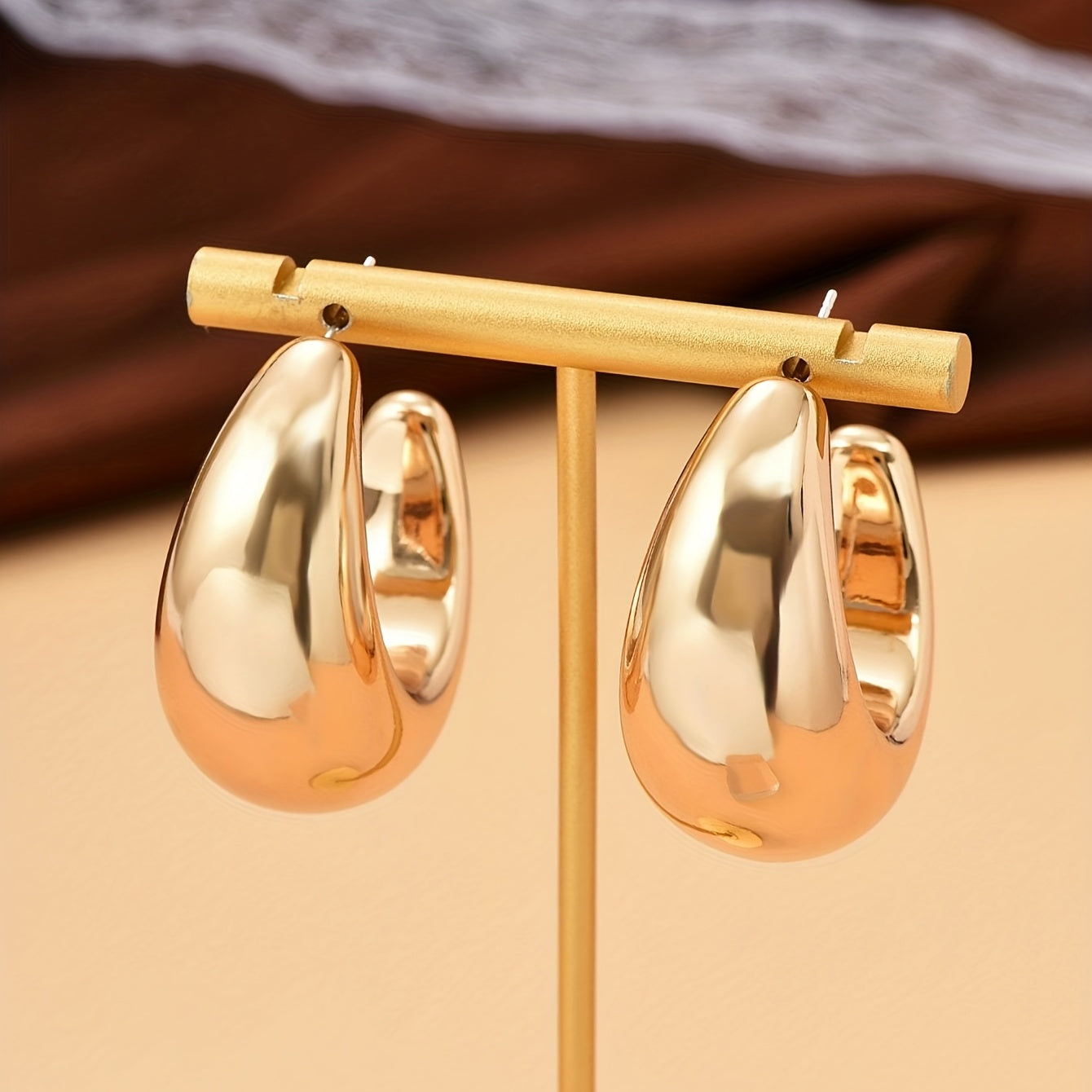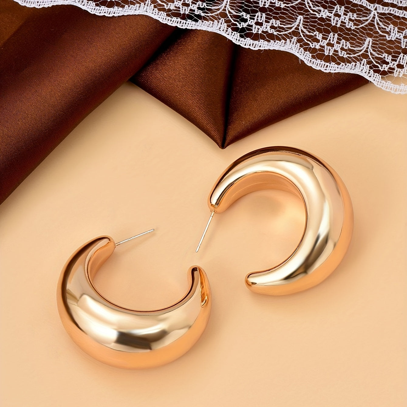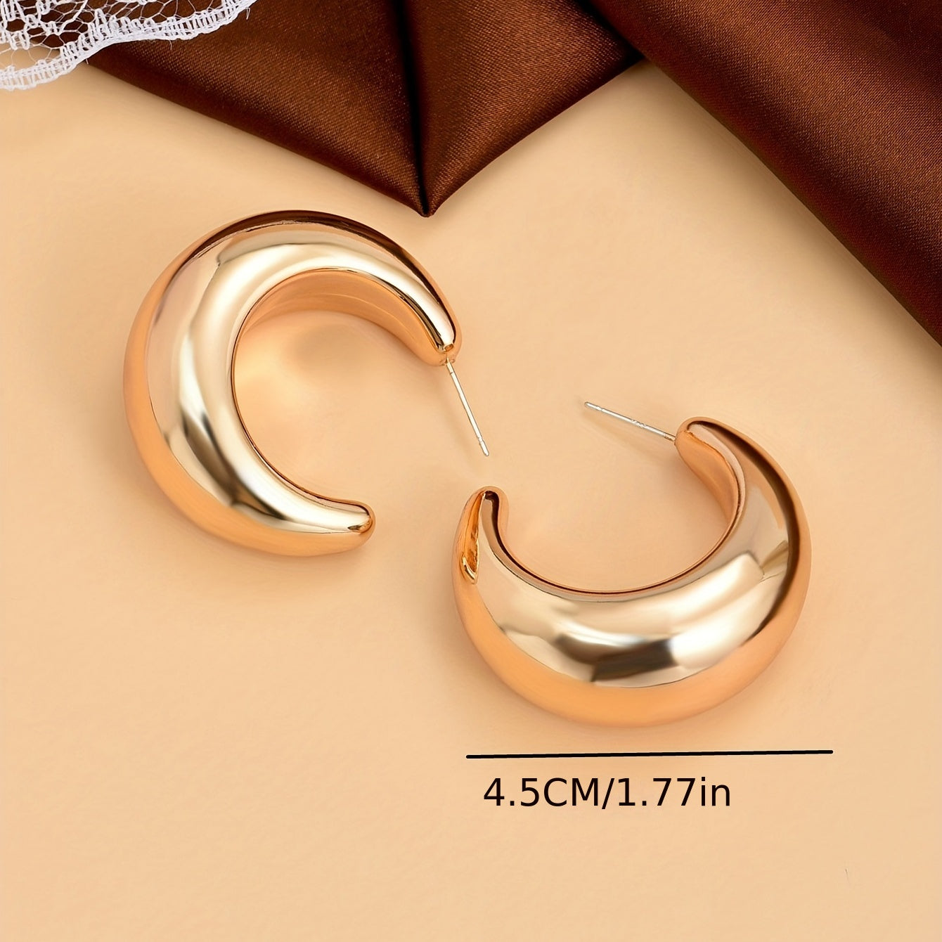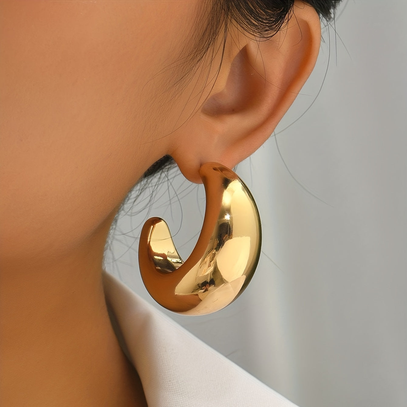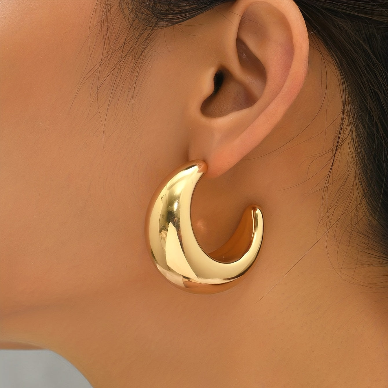 Add a touch of elegance to your outfit with these C shape glossy golden hoop earrings. Perfect for daily casual wear or as a thoughtful gift for a loved one.