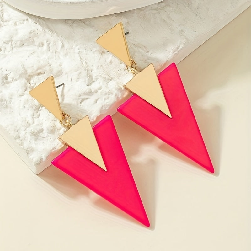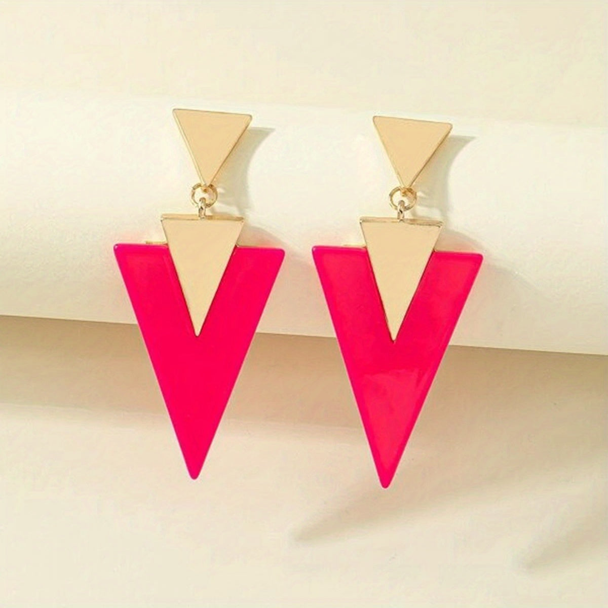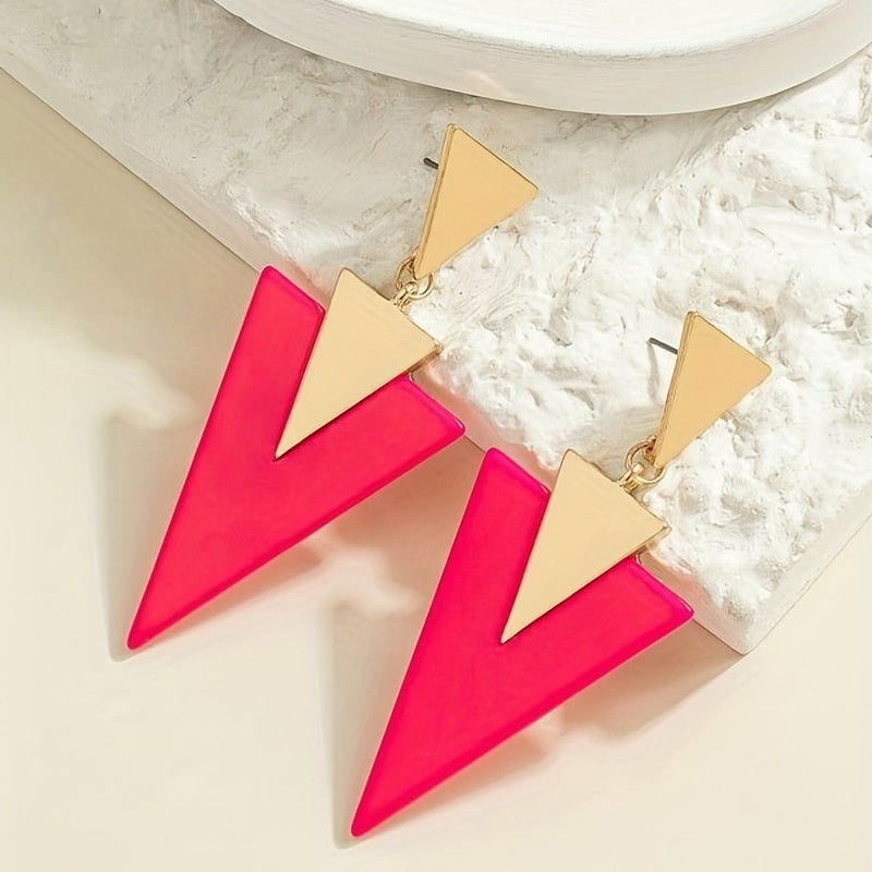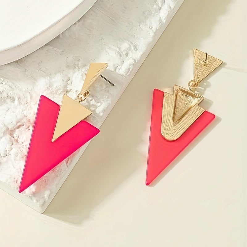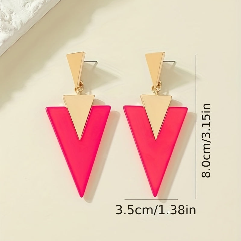Add a pop of color to your outfit with these trendy triangle shape dangle earrings. Made of high-quality alloy, these earrings are perfect for daily wear or special occasions.