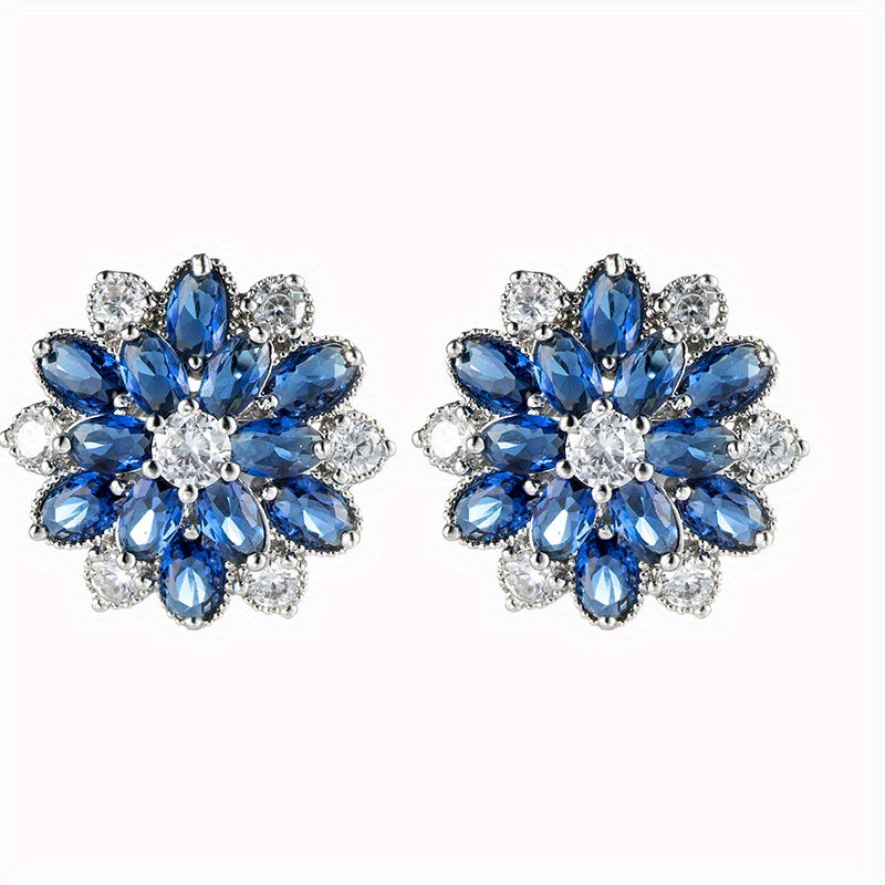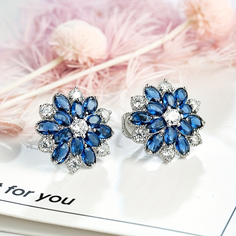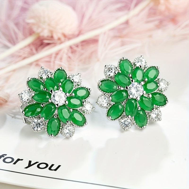 Green Zircon Decor Flower Clip On Earrings Minimalist Style